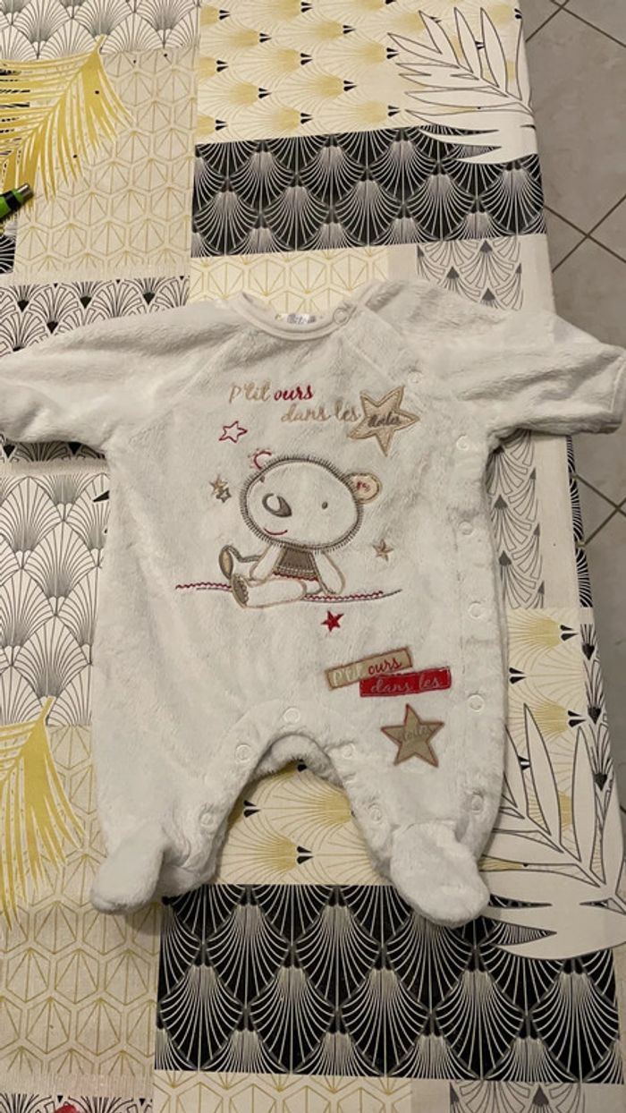 Pyjama préma en excellent état, tout doux, couleur mixte, ouverture sur le devant. #dressingdeMilonaissance