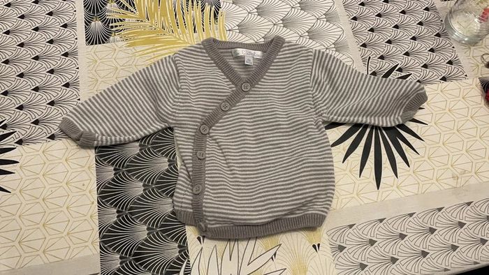 Gilet cache coeur mixte taille naissance (très pratique pour la maternité). Couleur gris et blanc à rayures. Excellent état, très peu porté. #dressingdeMilonaissance