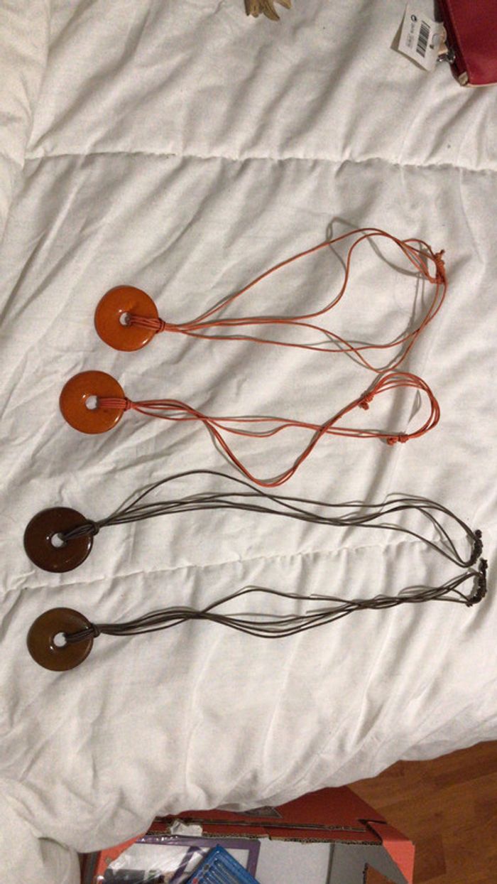 Lot de 4 colliers 2 oranges et 2 marrons. Quelques marques d’utilisation mais peuvent encore servir #dressingdeJenniaccessoirefemme
