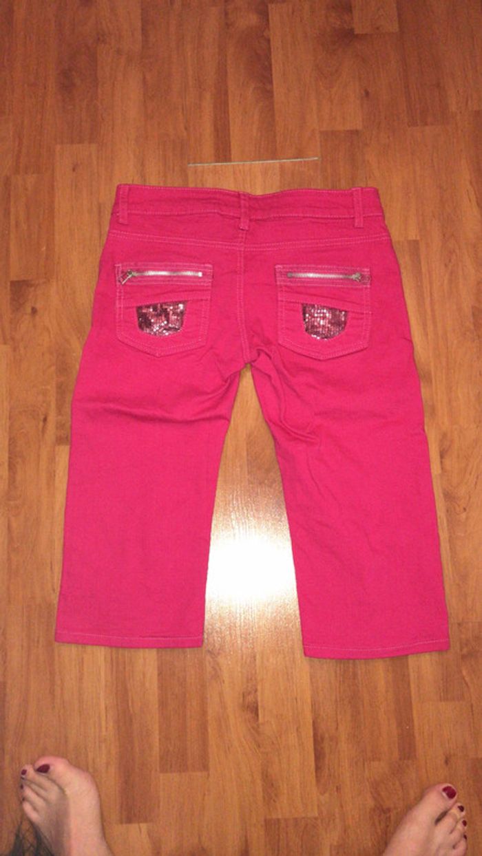 Pantacourt rose fuchsia avec 2 poches avant et 2 poches arrière avec effet strass et fermeture éclaire. Excellent état #dressingdeJennivêtementstaille38