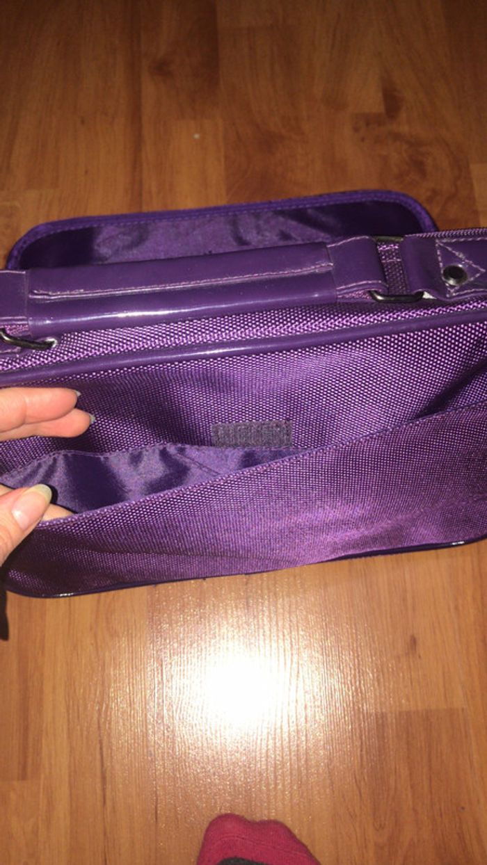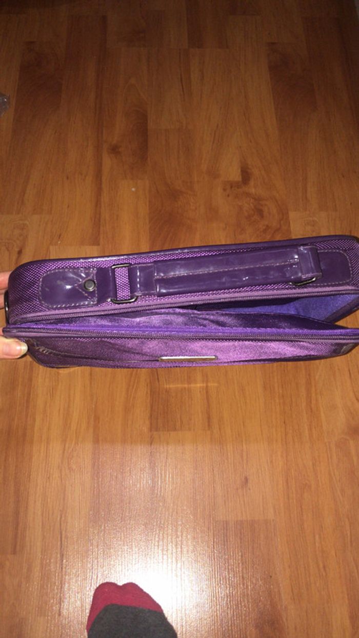 Sacoche pour petit ordinateur (Netbook) ou tablette avec de nombreuses poches de rangement (1 devant et 1 derrière à scratch, et 1 à l’intérieur). Possibilité de porter la sacoche à la main ou sur l’épaule avec la lanière fournie (jamais utilisée). Votre appareil ne risque rien grâce au scratch intérieur permettant de le bloquer pendant le transport. A noter deux petites marques en bas (visible sur les deux dernières photos) mais qui ne gêne en rien l’utilisation. #dressingdeJenniaccessoirefemme