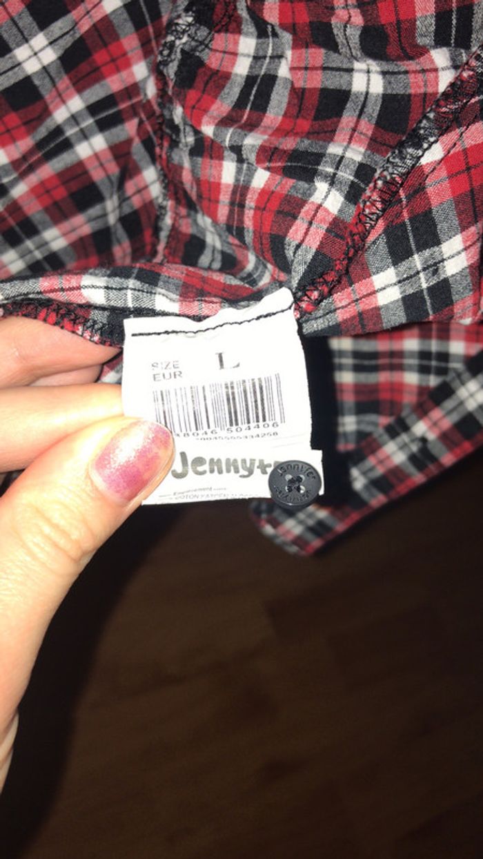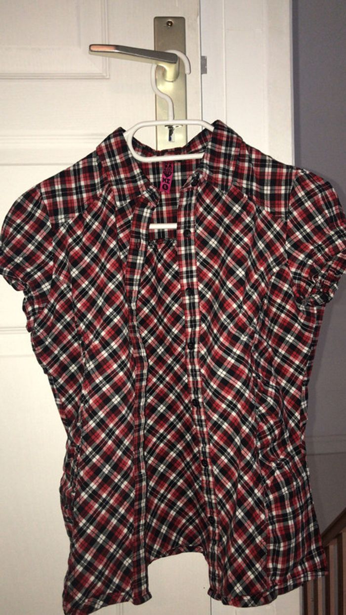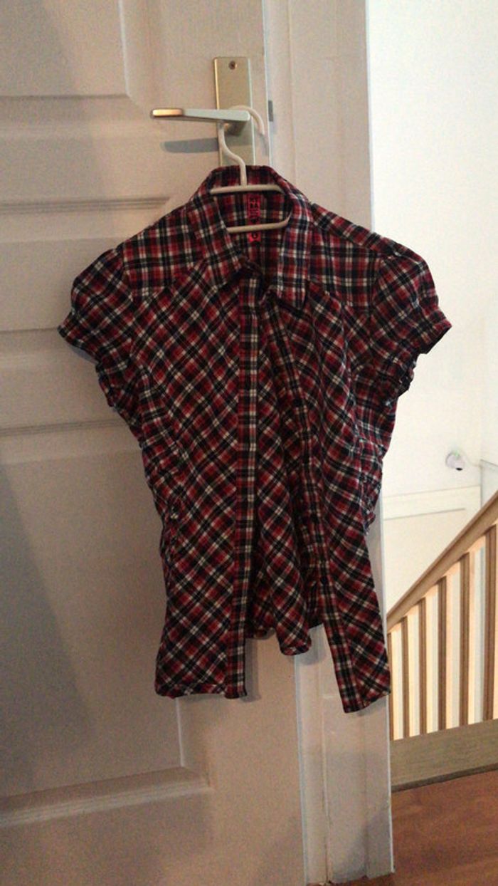 Chemise rouge, noire et blanche. Très bon état. Vendu avec un bouton de rechange. Indiqué taille L mais taille vraiment petit, je dirais plus du S. #dressingdeJennivêtementstaille36