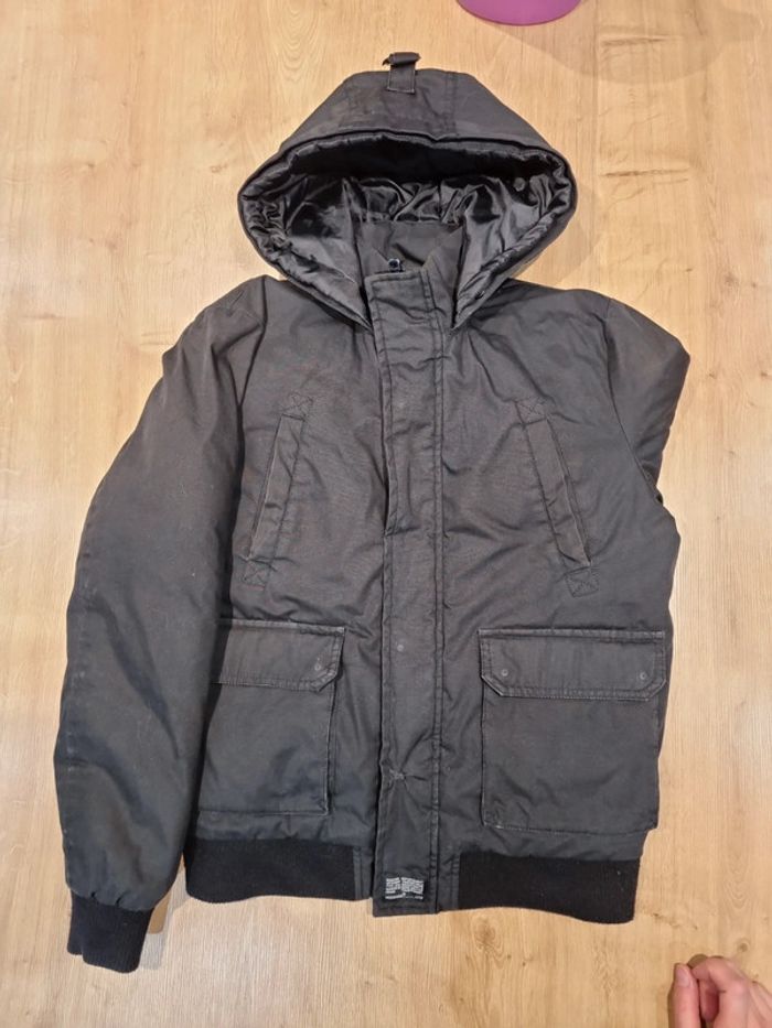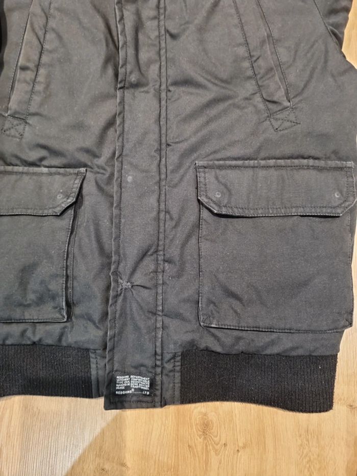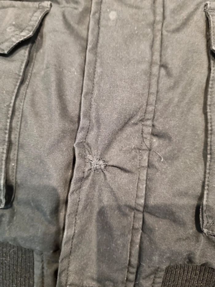 Bon état général, je ne retrouve pas la moumoute de la capuche, pressions légèrement blanchies et un point à été fait sur le pression du bas sur la fermeture (voir photos pour les défauts)