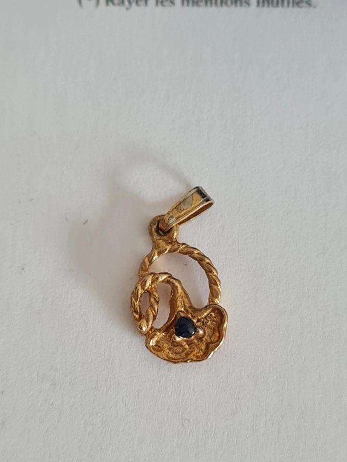 Petit pendentif plaqué or (poinçon 4eme photo) vintage. Incrusté d'une petit pierre en onyx noir. Bijou récupéré de ma grand-mère, acheté dans les années 50. Couleur un petit peu passé au niveau de l'attache, mais bijou en parfait état.