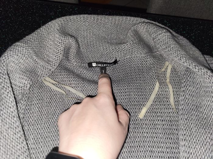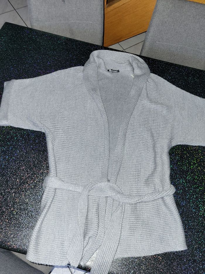 Gilet en laine manche courte avec ceinture. Une attache pour accrocher au ceintre et cassé. Taille 1 mais peux convenir aussi à un 38/40.