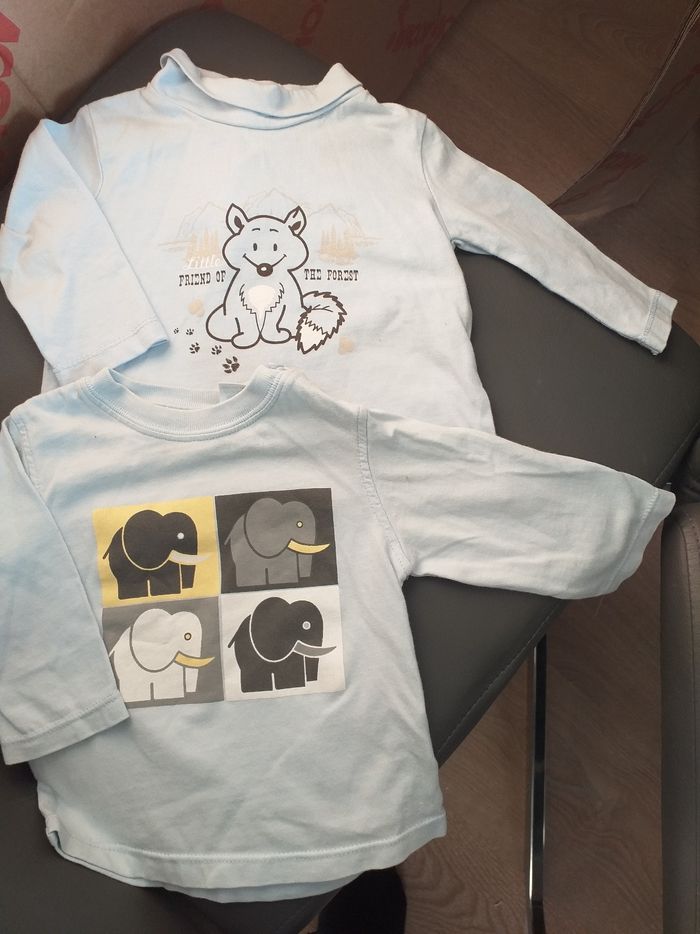 2 hauts manches longues dont un col roulé. En très bon état. Taille: 3 mois 1 obaibi et l'autre C&A
