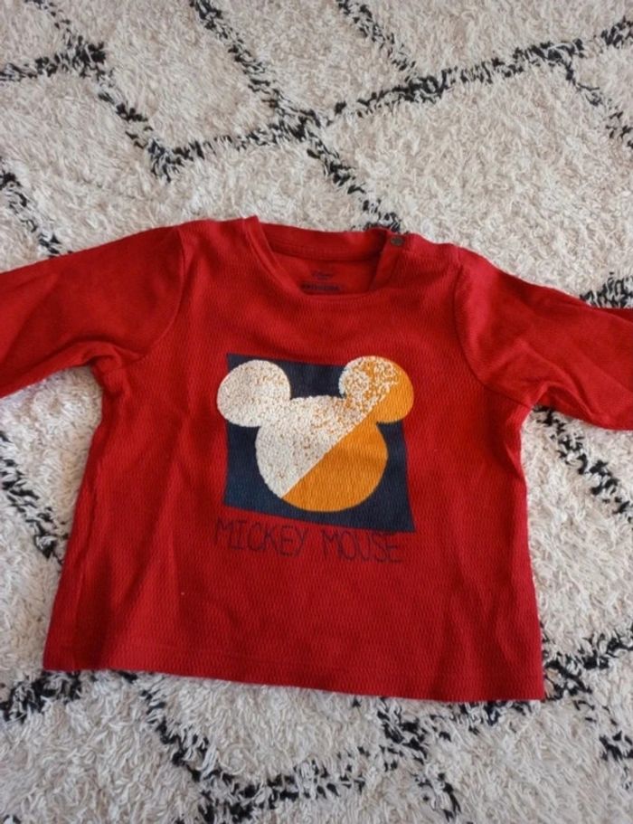 T-shirt manche longue, rouge. Motif Mickey. Taille 9 mois Très bon état