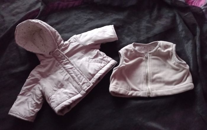Manteau Vert Baudet 3 mois (45/60 cm) + gilet sans manches molletonné, doublés, fermeture éclair et pressions