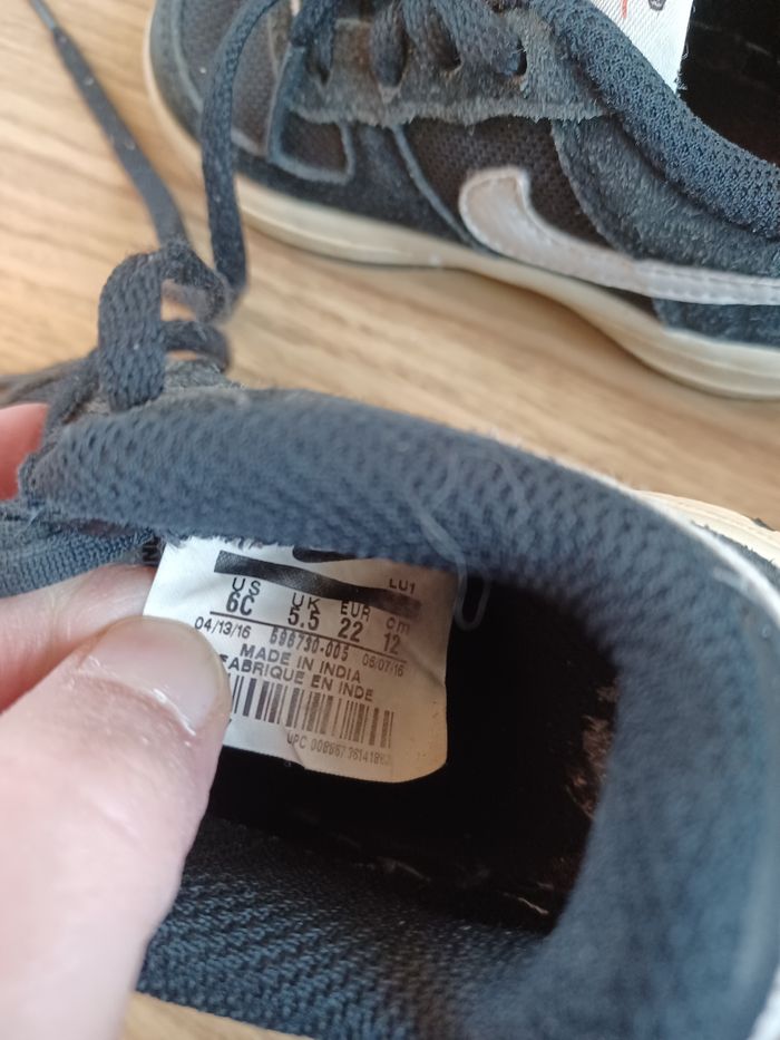 Baskets Nike noir, taille 22, ayant servi. État satisfaisant, pointes un peu abîmées.chaussure