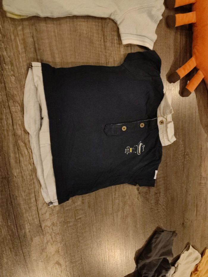 Le plus clair est un Vertbaudet , bleu très clair Le second un Kiabi , trace de repassage sur les manches