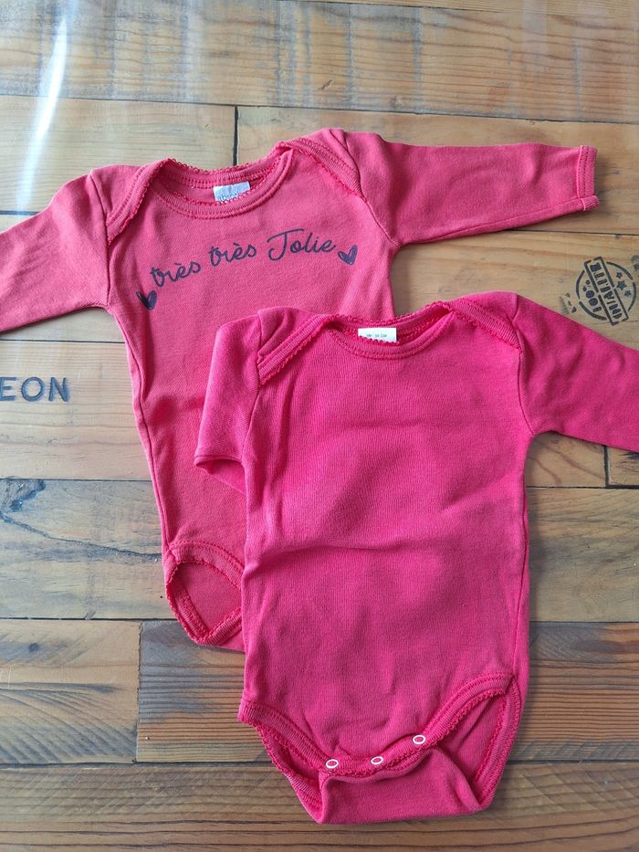 FILLE 3 MOIS N°677 lot de 2 bodies Longues manches Rose bonbon 100% coton Taille 3 mois Absorba 5€ #kelly_fille3mois