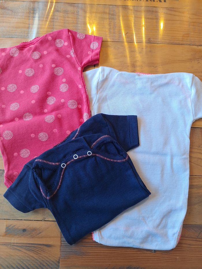 FILLE 3 MOIS N°679 lot de 3 bodies Ma.ches courte Rose / bleu / blanc 100% coton Taille 3 mois Absorba 6€ #kelly_fille3mois