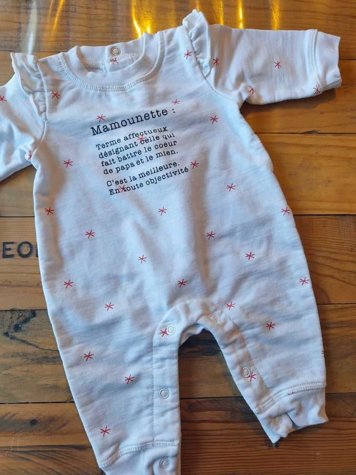 FILLE 3 MOIS N°684 Combi blanc étoile Pression entre jambes/ dos 75% coton 25% polyester Taille 3 mois Gémo 3€ #kelly_fille3mois