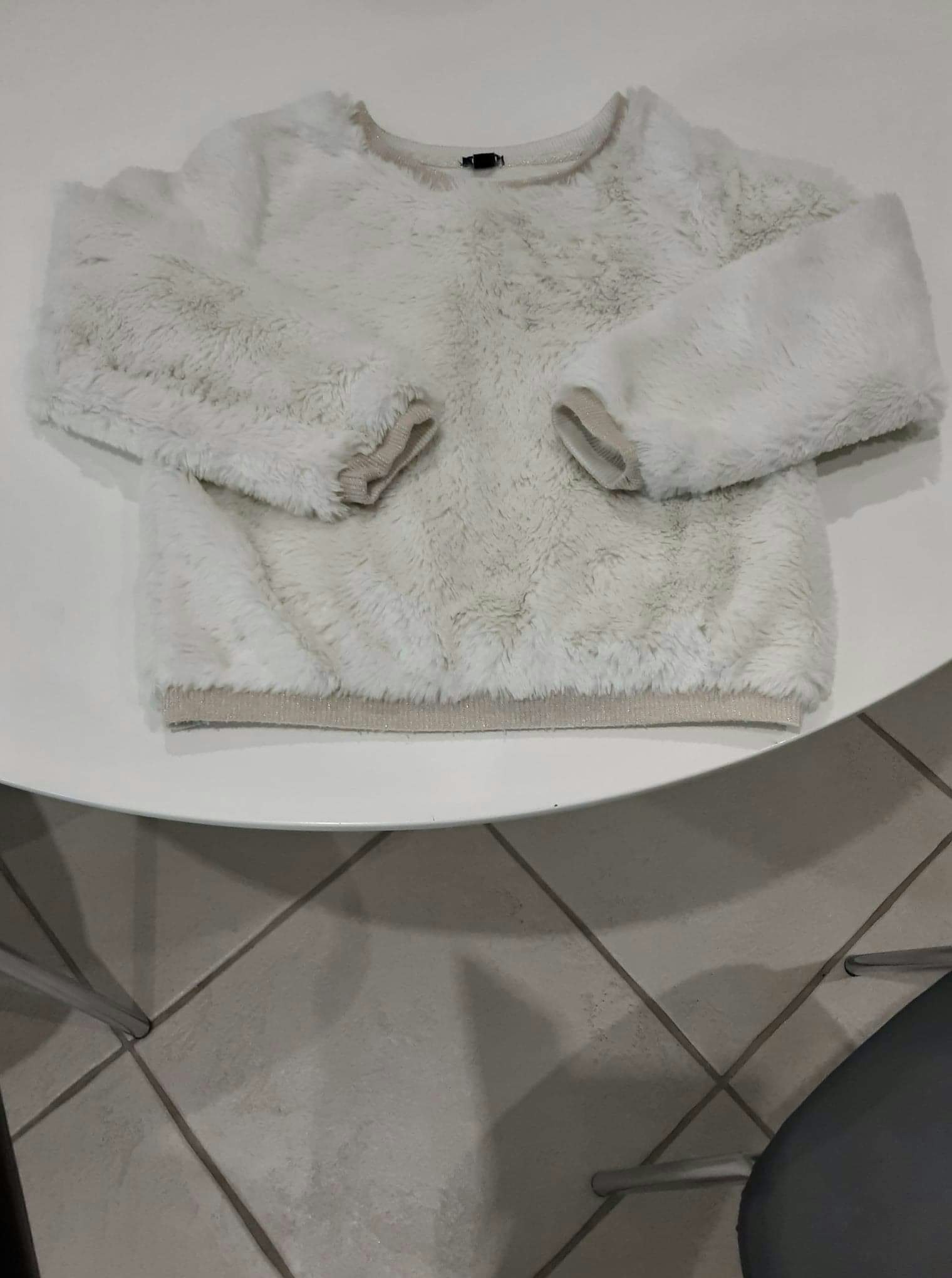 Veste fuchsia. Marqué 5ans, mais taille petit Pull blanc très douillet,3ans.