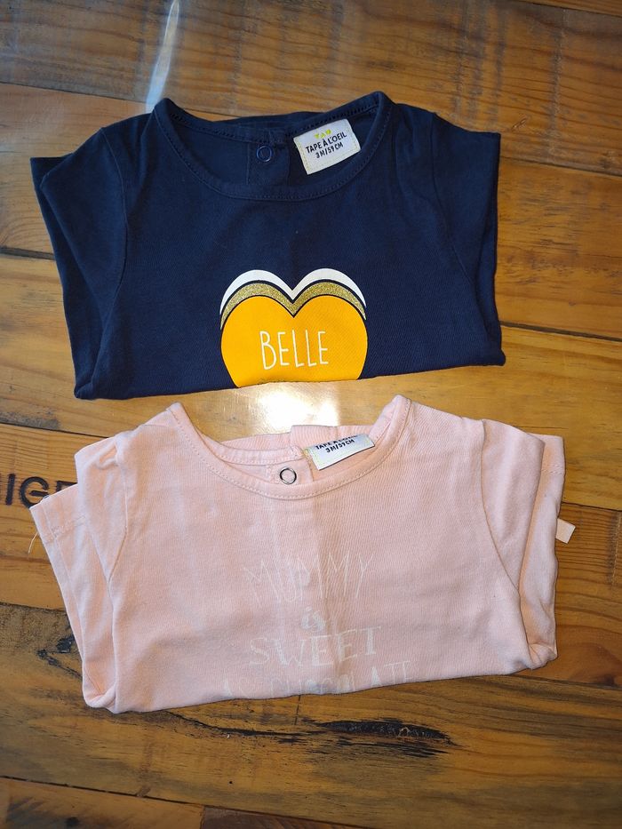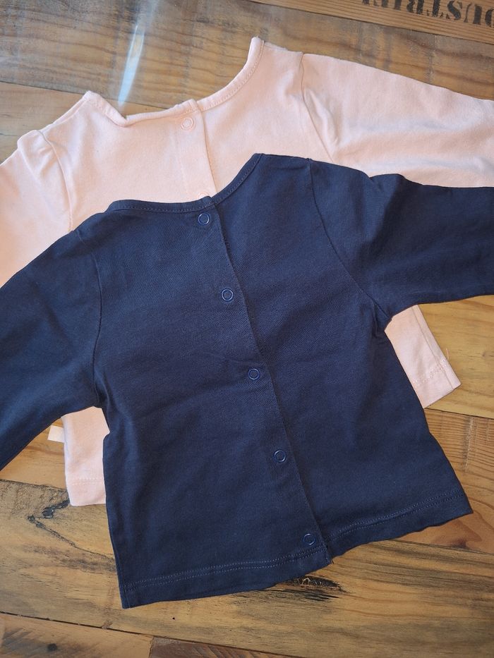 FILLE 3 MOIS N°696 lot de 2 maillots -bleu marine -rose pale Pression au dos Taille 3 mois Tape a l oeil 5€ #kelly_fille3mois