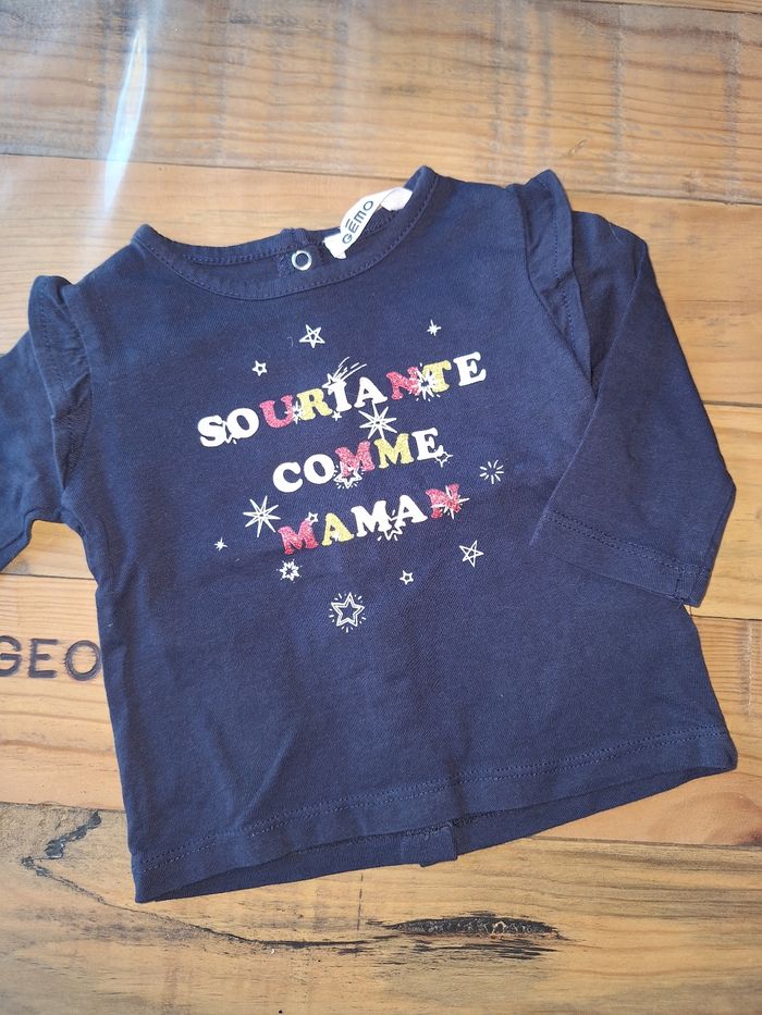 FILLE 3 MOIS N°702 maillot bleu marine Pression au dos 100% coton Taille 3 mois Gémo 1,50€ #kelly_fille3mois