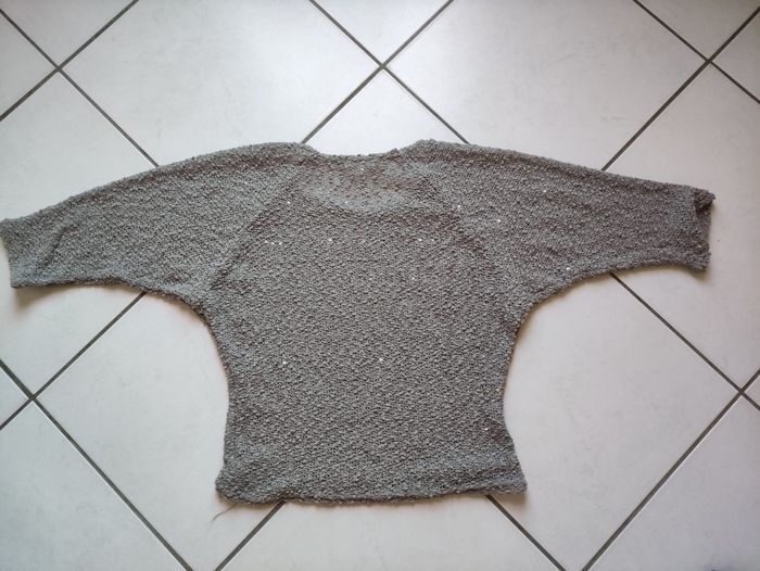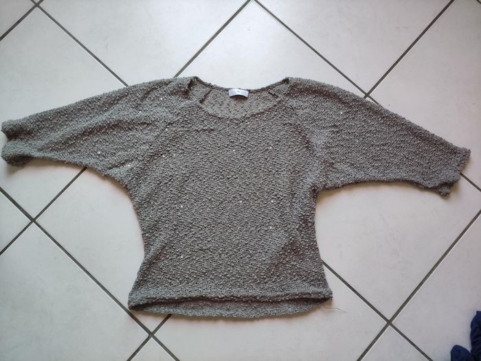 Pull neuf manche 3/4 avec des reflets brillants cache cache gris taille 36 - photo numéro 1