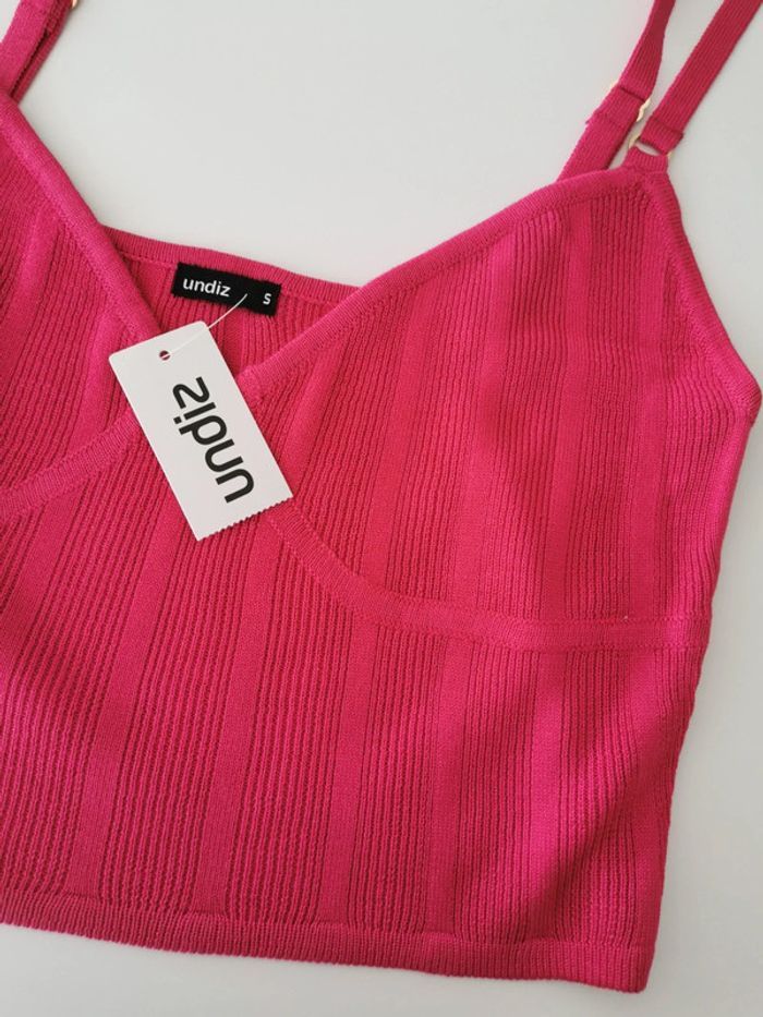 🙎‍♀️ ARTICLE NEUF AVEC ÉTIQUETTE 🙎‍♀️ Top court côtelé 👩 Undiz Taille S • Matière: 52% viscose - 48% acrylique • Tissu côtelé • Décolleté en V • Fines bretelles réglables • Couleur: rose foncé • 📏 Longueur: environ 40 cm • 📏 Mesure sous aisselles: 35 cm Parfait état👌, avec étiquette🏷️, jamais porté #SoStyLifemmeTailleS ⬛