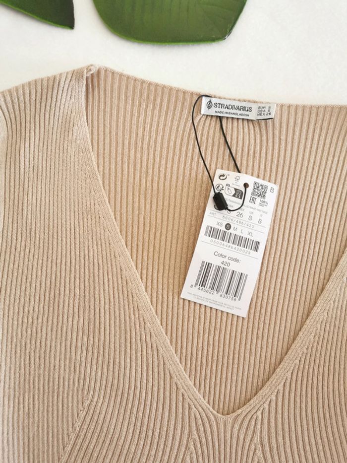 👗 ARTICLE NEUF AVEC ÉTIQUETTE 👗 Robe 👗 moulante 👩 Stradivarius Taille S • Matière: 70% viscose - 30% polyamide • Maille côtelée • Décolleté en V • Coupe courte moulante • Manches longues • Couleur: beige • 📏 Longueur: 84 cm • 📏 Mesure épaules: 36 cm 💰 Prix boutique: 19.99€ Parfait état👌, avec étiquette🏷️, jamais portée #SoStyLifemmeTailleS ⬛