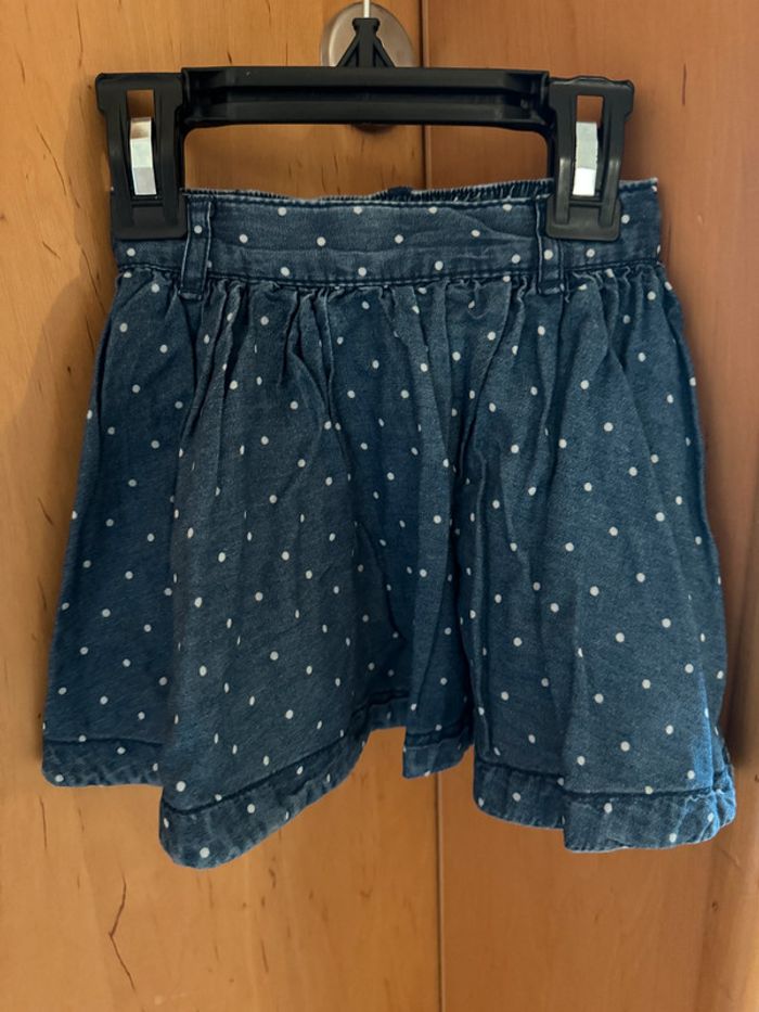 Magnifique jupe Okaidi 3 ans. Elle a un élastique à l'intérieur qui se règle avec 1 bouton de chaque côté de la taille Elle est jean avec des petits pois #jean #bleu #jupe #3ans #98cm #36mois #okaidi #fille #sonia57690