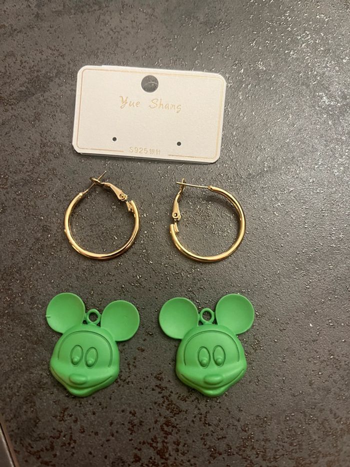 Jolie paire de boucles d'oreilles Mickey neuves Possible de mettre les créoles avec ou sans les têtes mickey #disney #mickey #vert #bouclesd'oreillesneuve #bouclesd'oreillesvertes #sonia57690