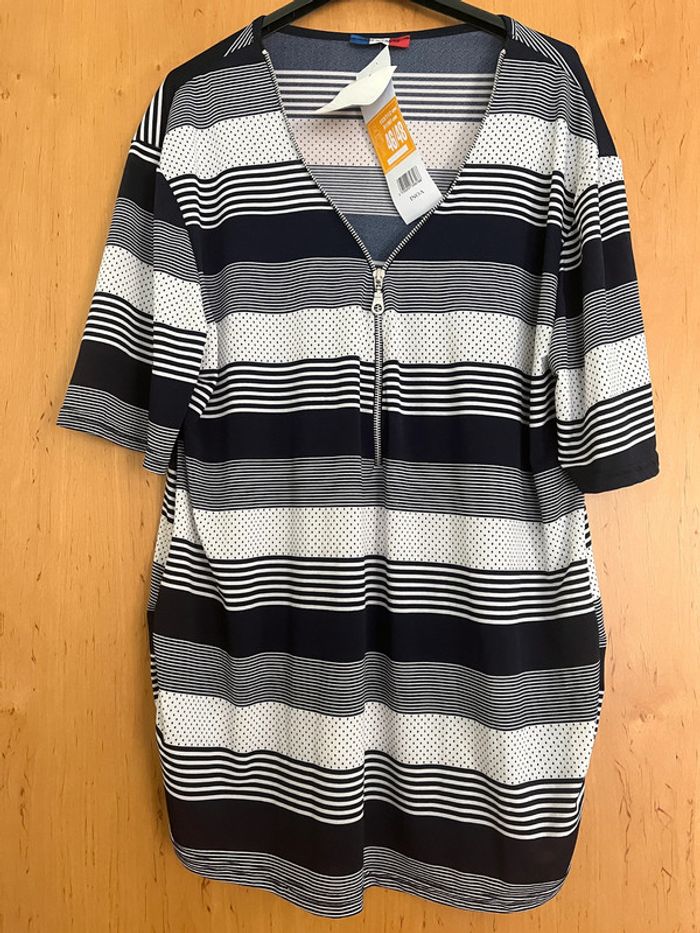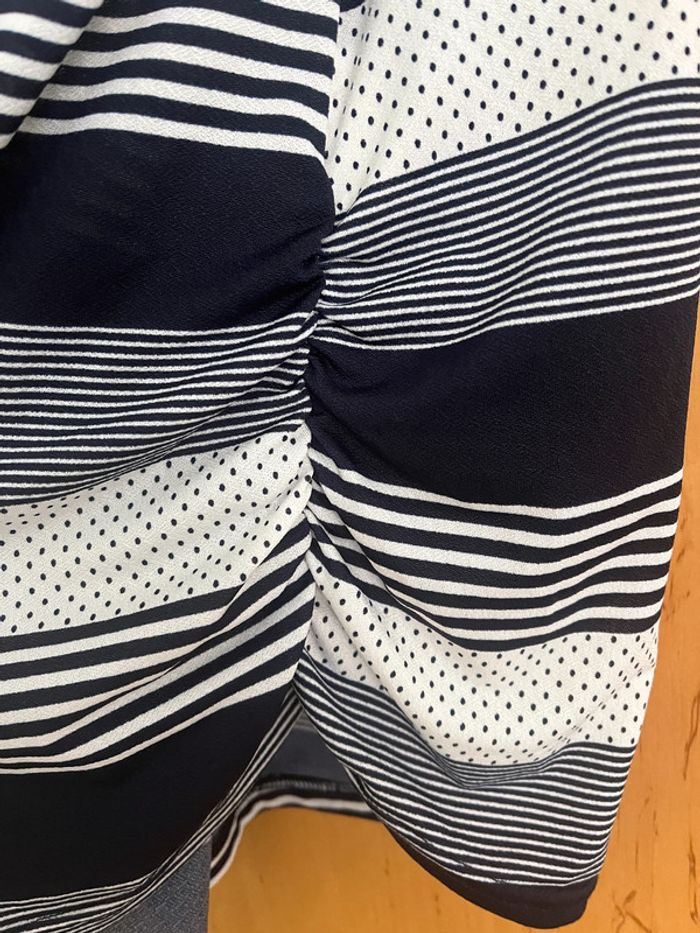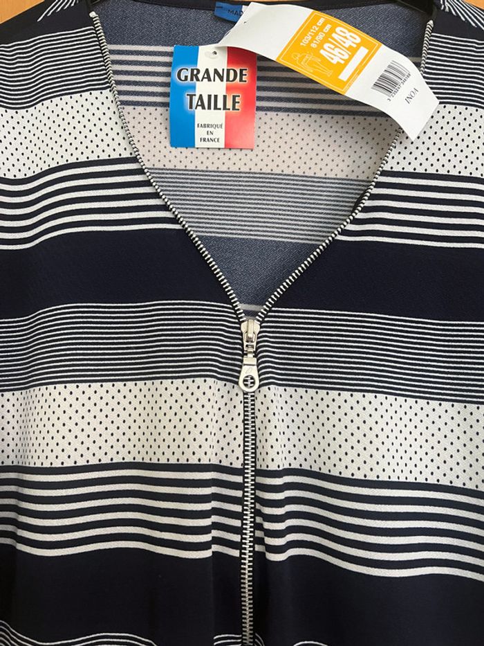 Joli haut manche courte taille 46/48 de fabrication française. Se ferme par une fermeture éclaire sur le devant Sur les côtés il y a un fronçage
