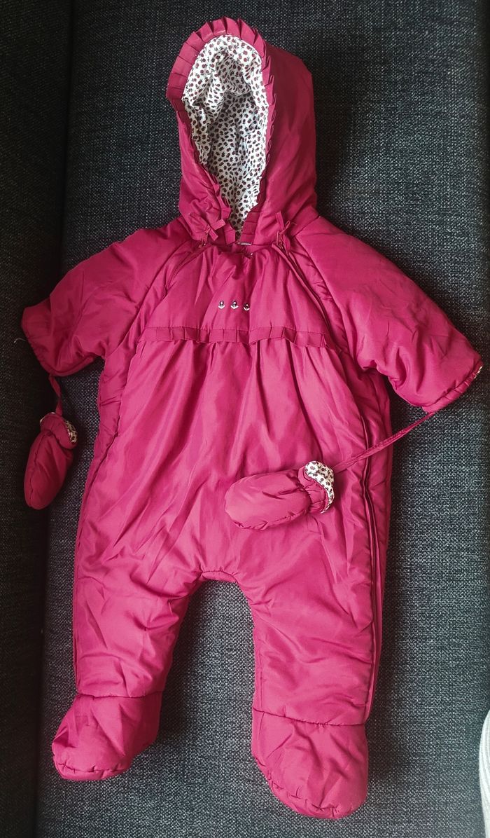 Joli manteau / combinaison intégrale pilote JACADI bébé taille 3 mois Rouge Intérieur fleuri Jolis détails (noeuds, volants) Parfait état