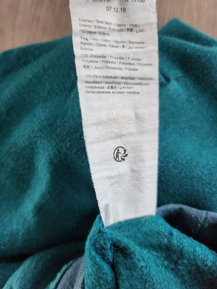 Vends sweat, taille 3 ans, de la marque Z, de couleur vert turquoise, en coton, polyester et fibre métallisée. Remise en main propre possible