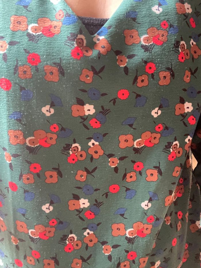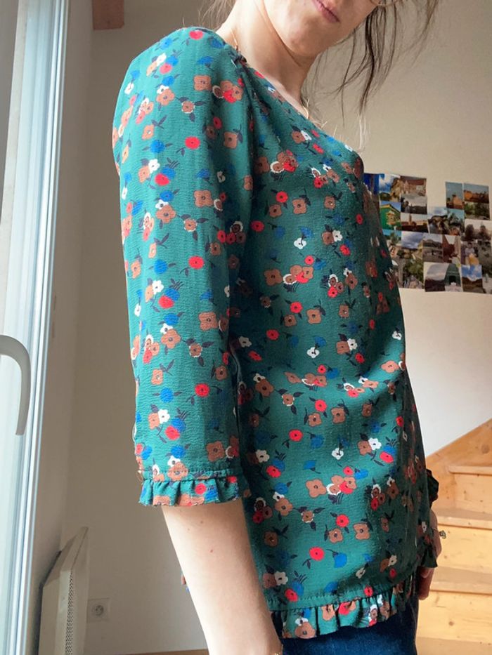 Blouse à fleurs vert de la marque Charlior avec des petits boutons sur les épaules Porté donc quelques peluches et traces d’usure qui ne se voient peu porté #charlior #fleuri #fleurs #blousefleurie