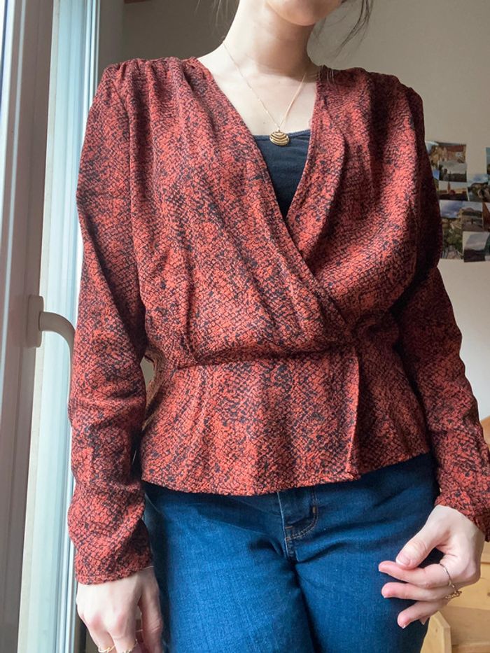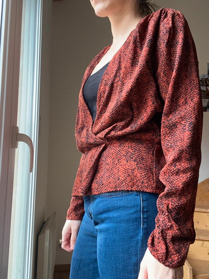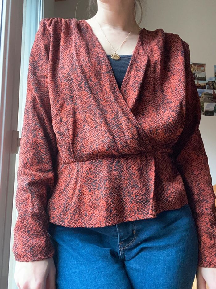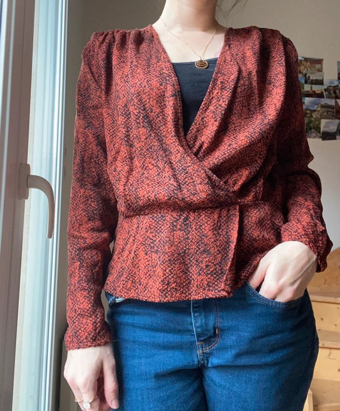 Blouse de la marque Kookai à motifs croco Couleur rouge rouille Très bon état Étiquette coupée, inscrit taille 42 mais convient à un M #kookai #kookaiblouse