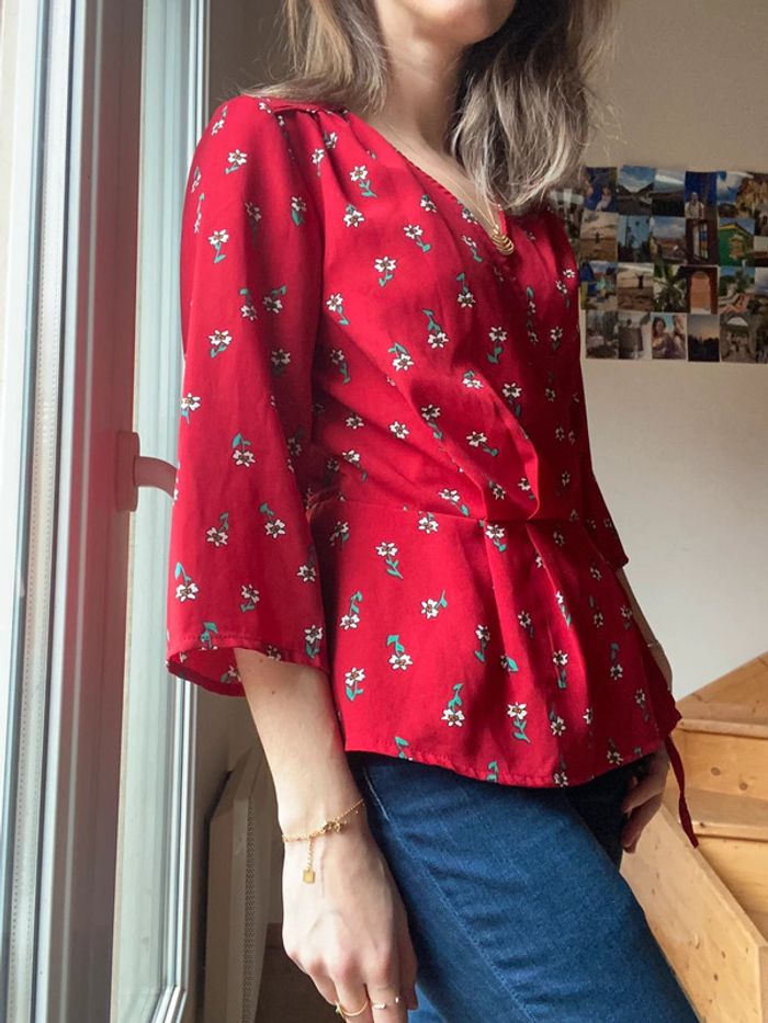 Cache cœur ou kimono rouge de la marque only à fleurs Il vaut mieux mettre quelque chose en dessous #cachecoeur #kimono #only