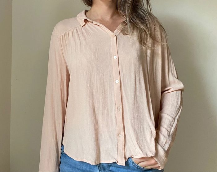 Blouse chemisier rose pale poudré nude de la marque h&m Taille 40 mais peut se porter sur un 36 Remise de -50% sur les lots #blousefemme #chemise #chemisierhm #blouserose #nude #rosepale
