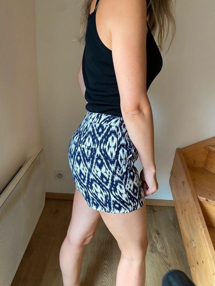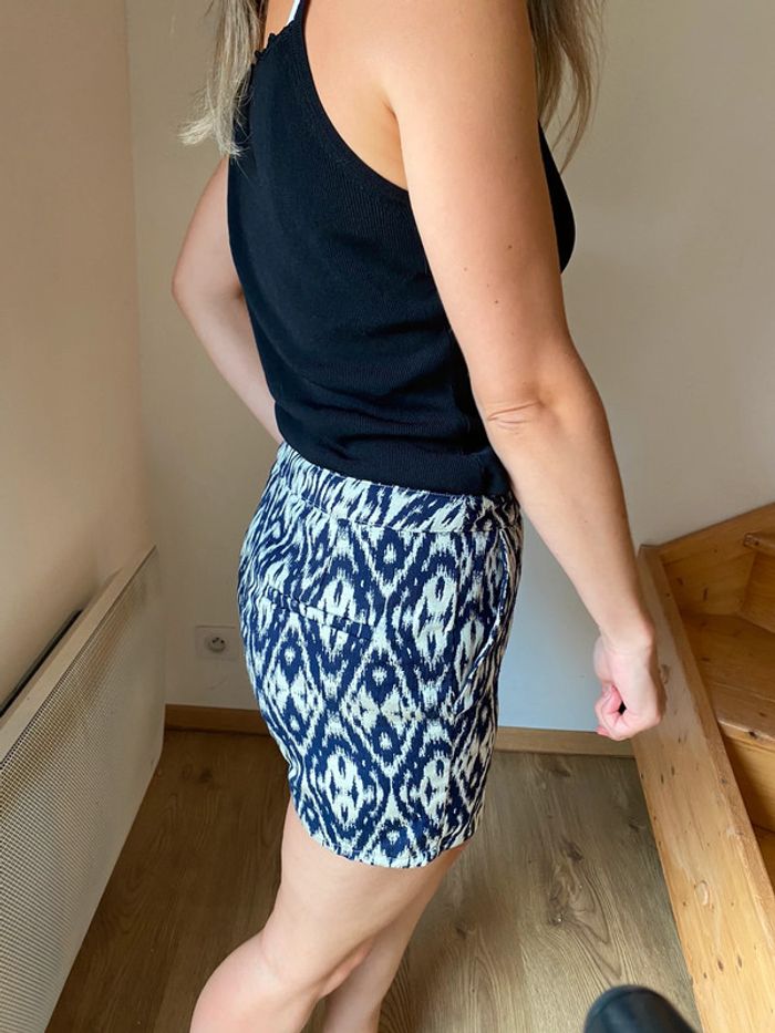 Joli short à motifs bleus marine taille haute Taille 34 , marque 3 suisses Très bon état #short #shortfemme #shortmotifs #shorttaillehaute #3suisses