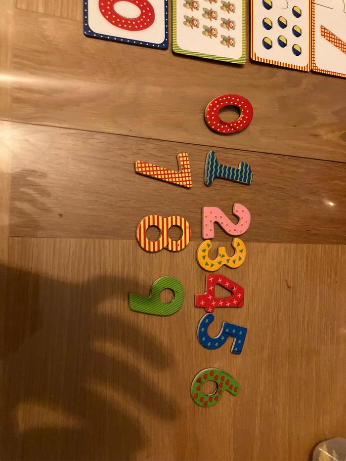 Bonjour Je vends ce jeu pour apprendre à compter. Les chiffres sont aimantés. ⚠️ les chiffres comportent quelques coups de feutre .