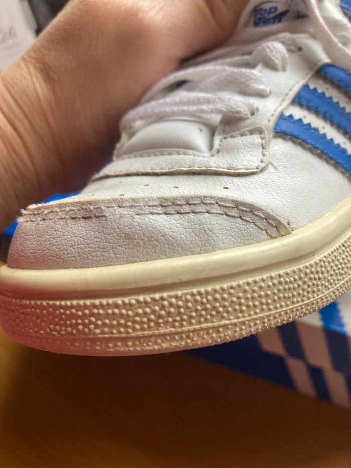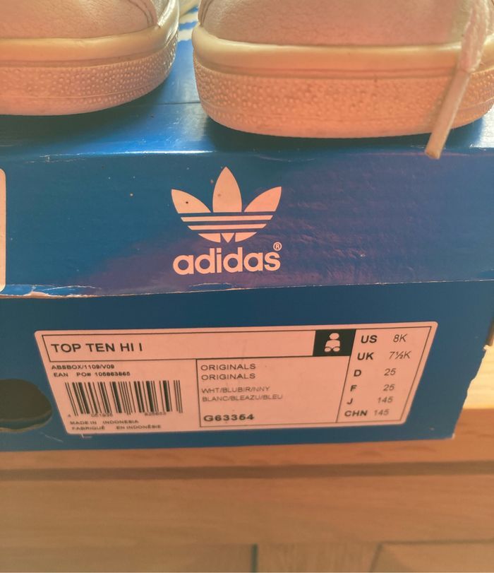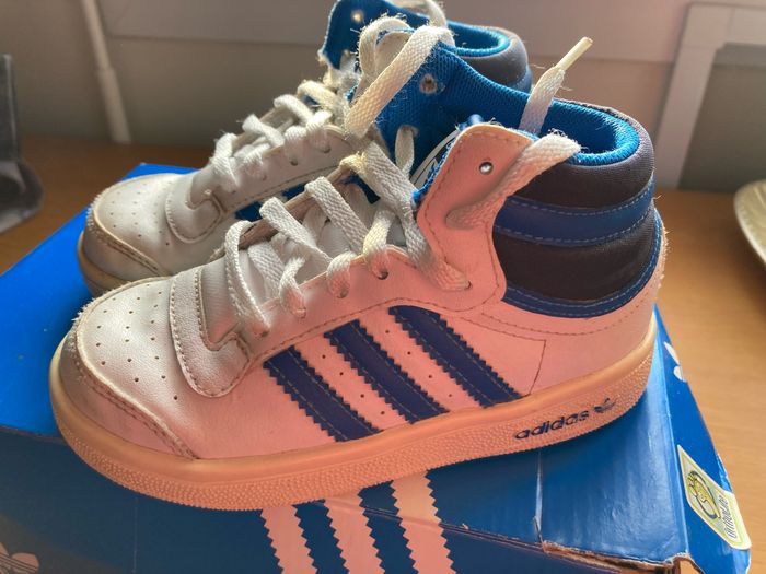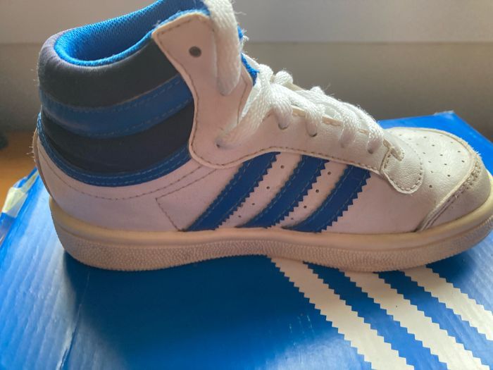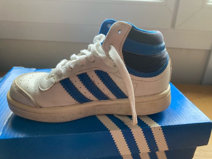 Bonjour Je vends cette paire de baskets Adidas en 25. En bon état hormis une petite marque sur le devant de la basket gauche cf la photo. Envoi rapide et soigné