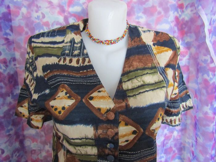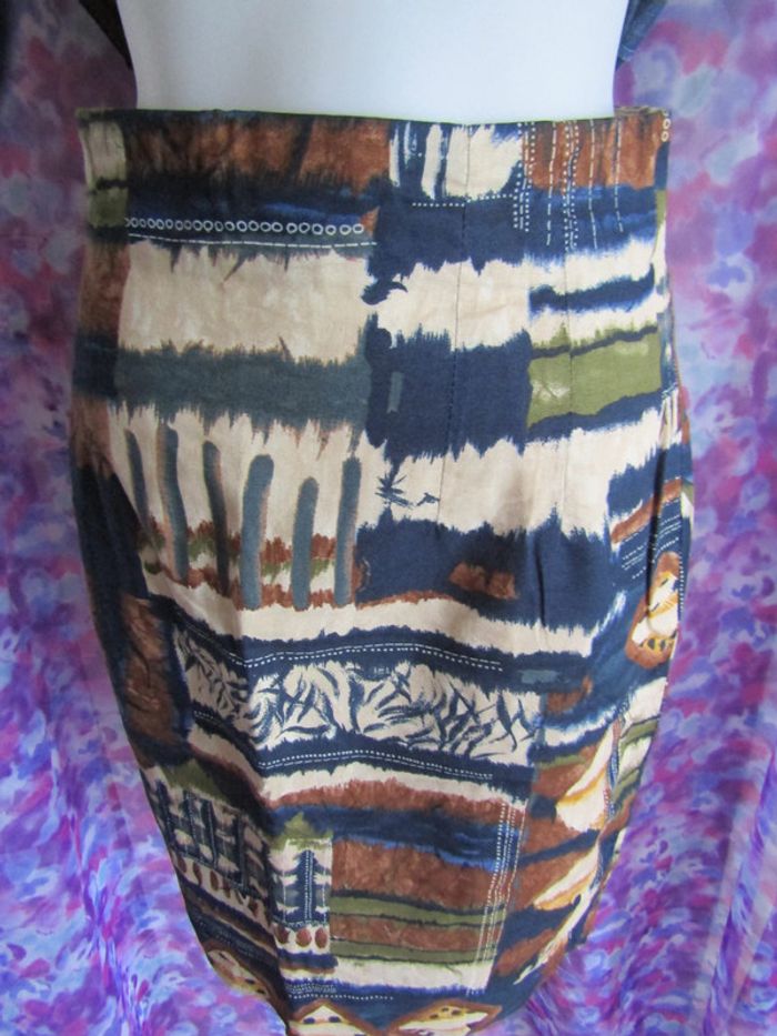 tailleur jupe et chemisier taille 40 Etam chemisier manche courte fermé par boutons jupe droite avec doublure intérieur longueur 53 centimètres fermée au dos par fermeture éclair. jupe fendue a l'arrière sur 8 centimètres longueur a la taille 35 centimètres