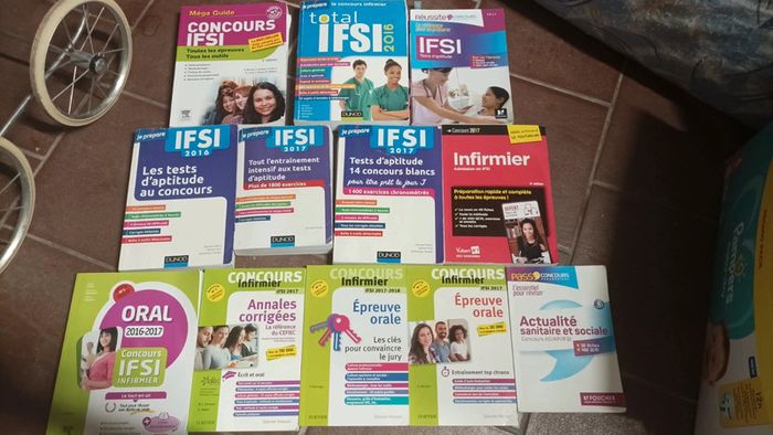 Lot de 12 livres pour s'entraîner pour divers concours car psychotechniques pareil pour tous sinon ben pour approfondir en infirmier, millieu médical En super état