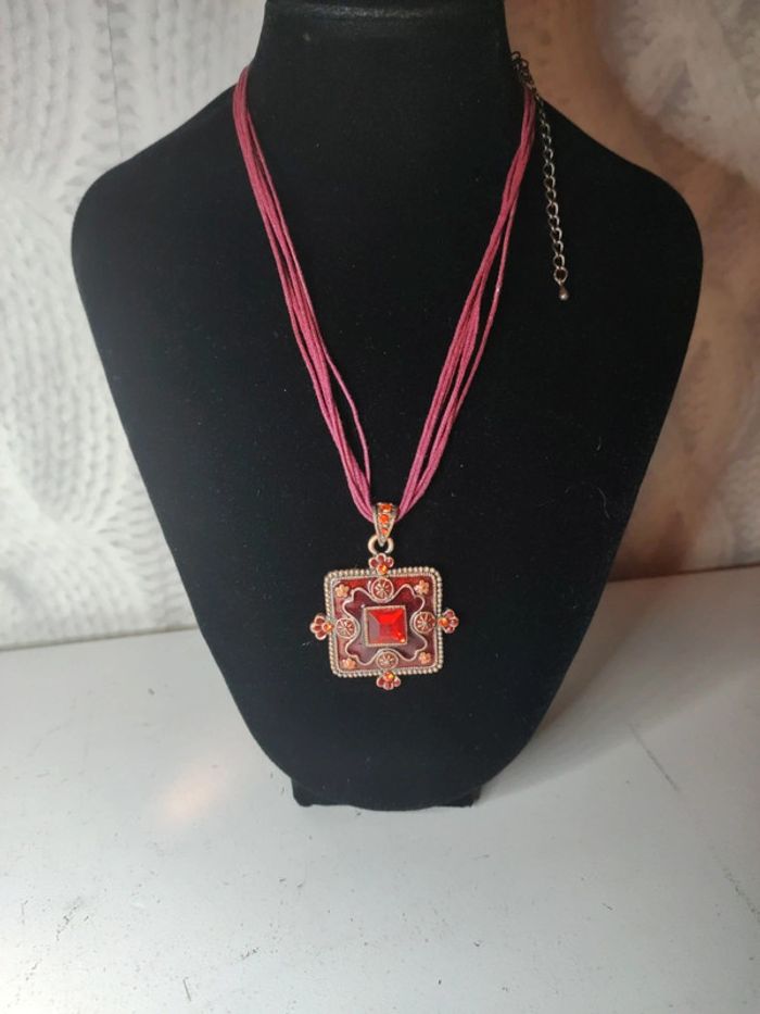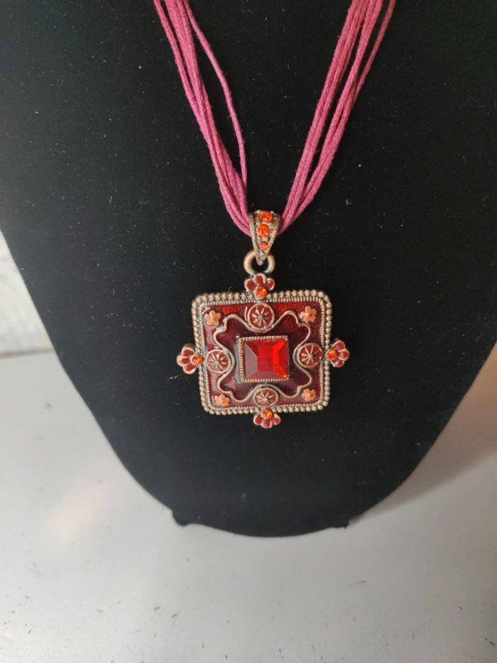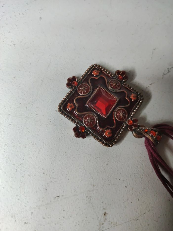 Très bon état cordons et pendentif métal et strass rouge #baronnecollier