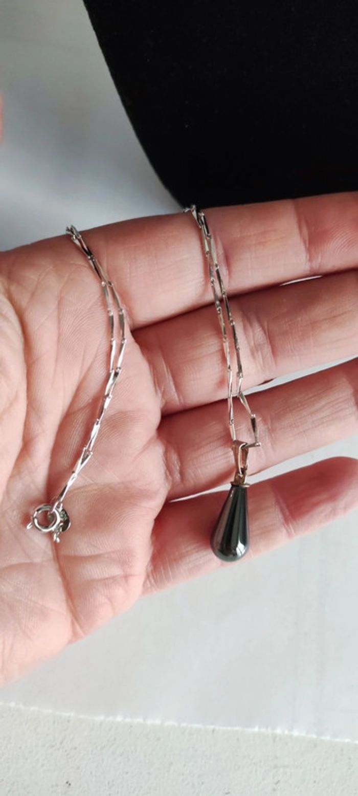 Très bon état Chaîne en argent 925 Goutte en perle noire #baronnecollier