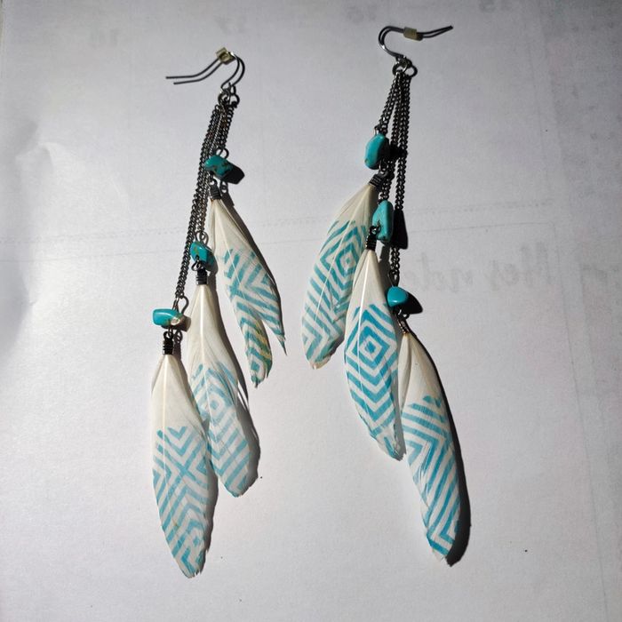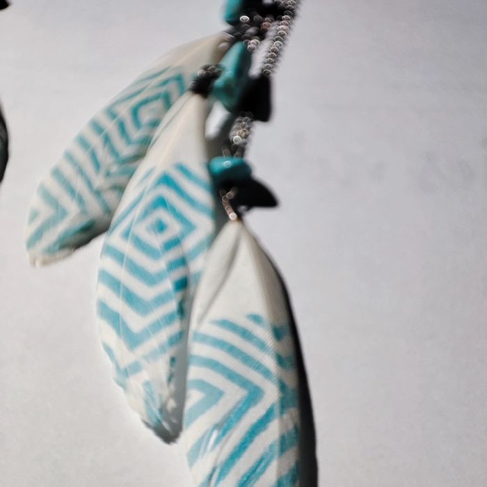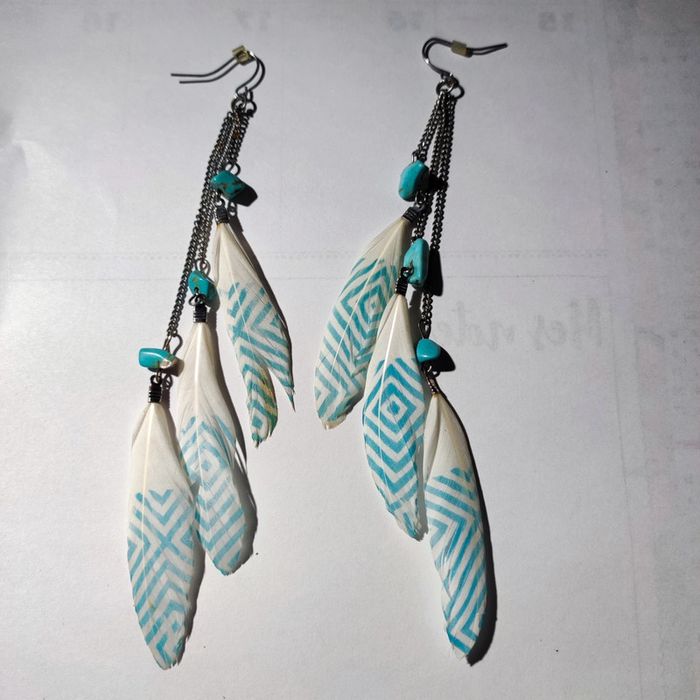 Boucles d'oreilles turquoise plumes - photo numéro 3