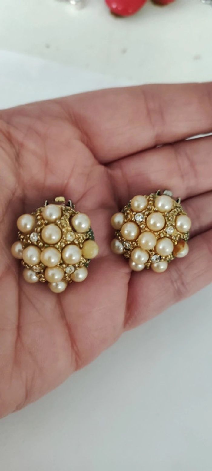 Clips d'oreilles vintage perles - photo numéro 2