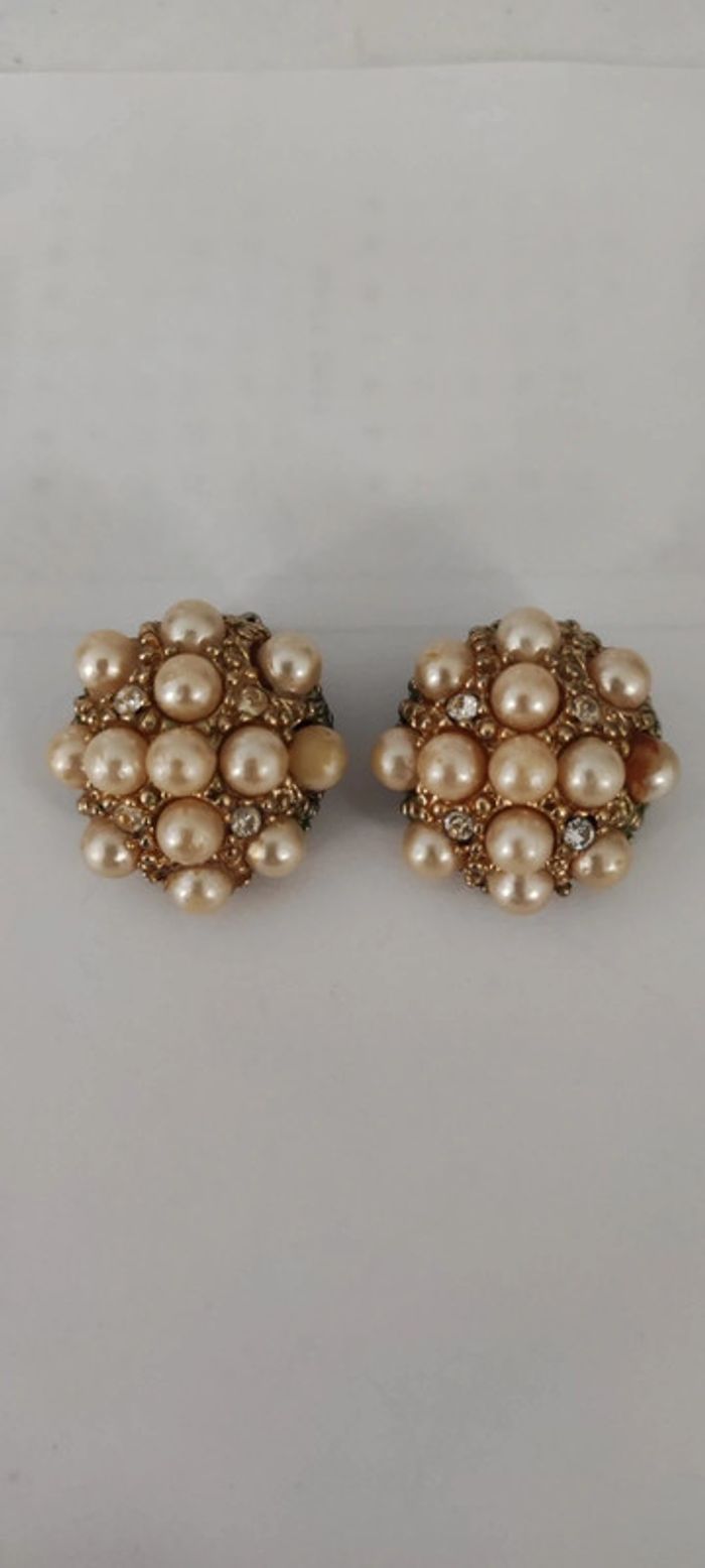 Clips d'oreilles vintage perles - photo numéro 1
