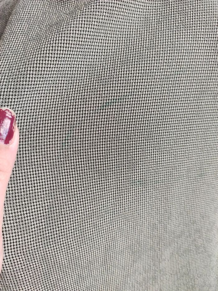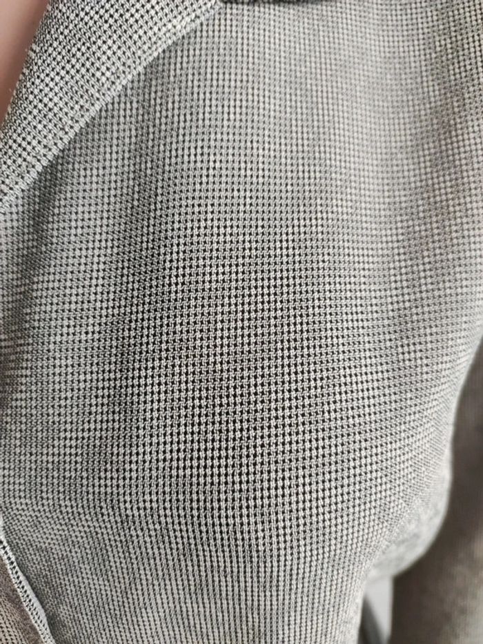 Épaules 44 cm SL 54 cm Imprimé pied de poule quand on y regarde de plus près Matière inconnue assez fluide et légère. Légèrement transparente Grande taille Dans le dos marque verte Boutons en nacre #baronne44 #baronnejacquelineriu