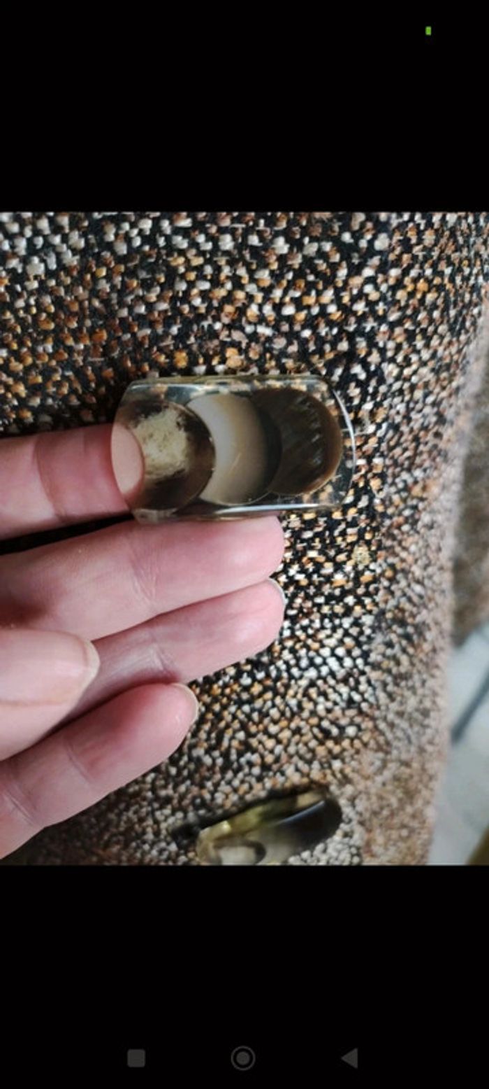 En bon état épaule 40 cm longueur 64 cm aucune étiquette de composition sans doute fabriquée en laine j'ai mis bon état car des bouloches sont visibles dues à la matière. Les boutons sont super beaux en plexiglas transparent #baronne40 #baronne2vintage #baronnelaine