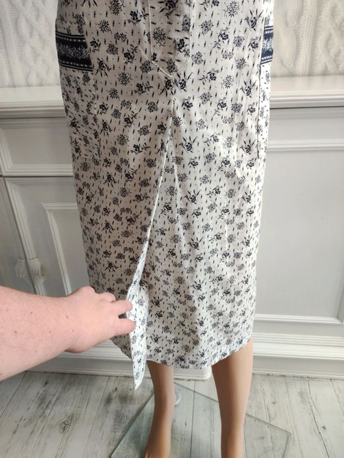 SL 53 cm Épaules 41 cm Taille 57 cm Longueur 109 cm Bon etat a déjà été portée indiqué sur étiquette taille 50 mais c'est du vintage plutôt une taille 40/42 vérifiez vos mesures Matière sans doute du coton pas d'indication étiquette Emplacement pour ceinture mais je n'ai pas la ceinture #baronne40 #baronne2vintage