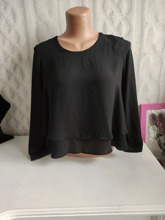 Blouse noire à volants Zara basic taille S - photo numéro 2