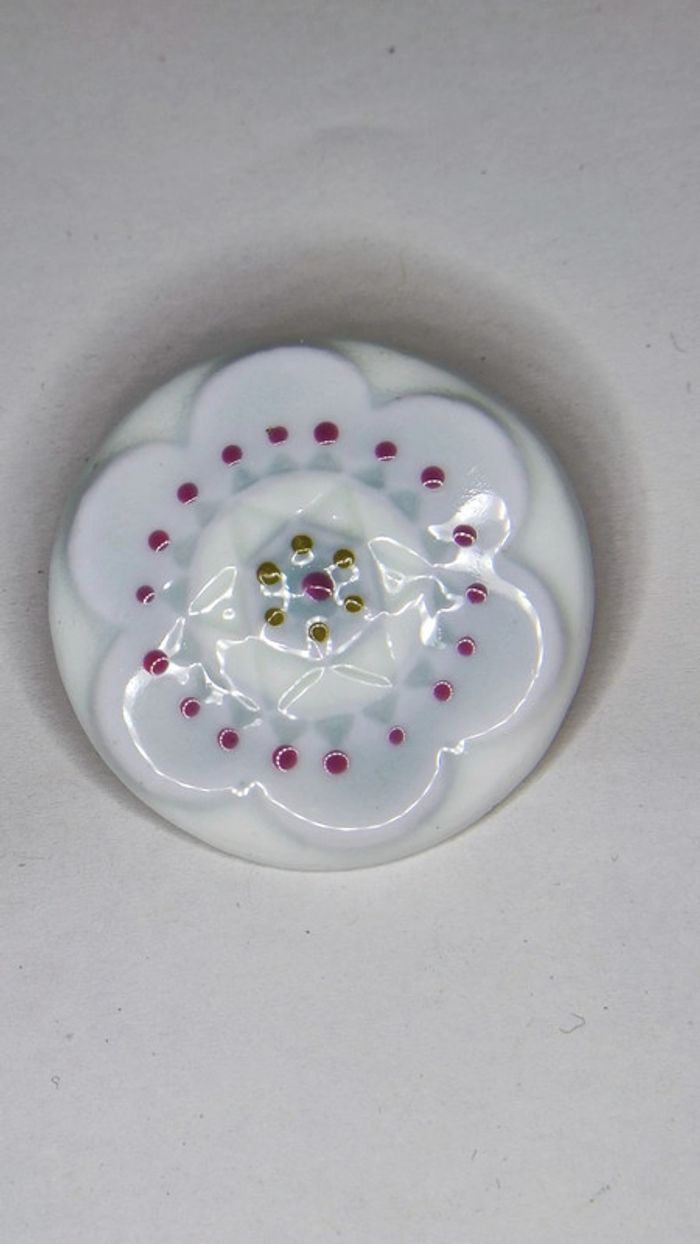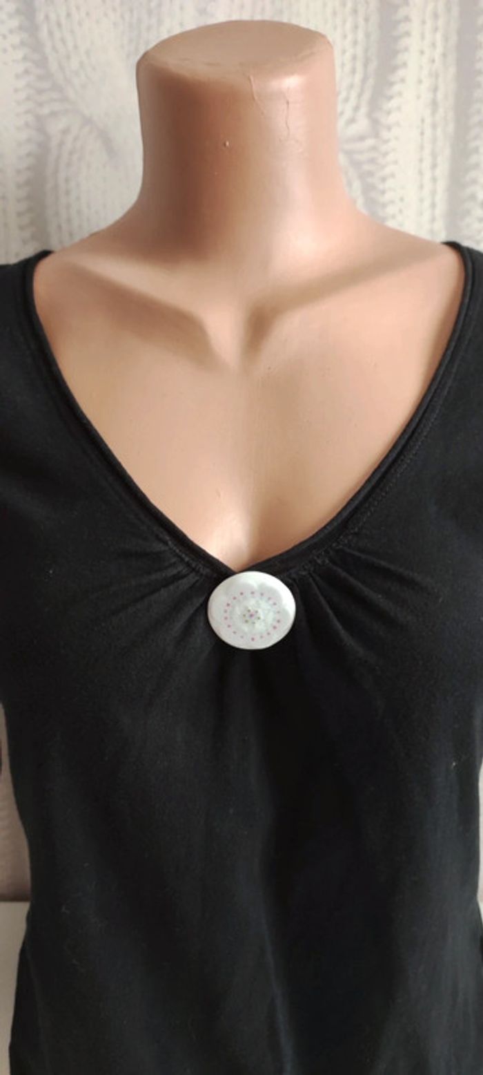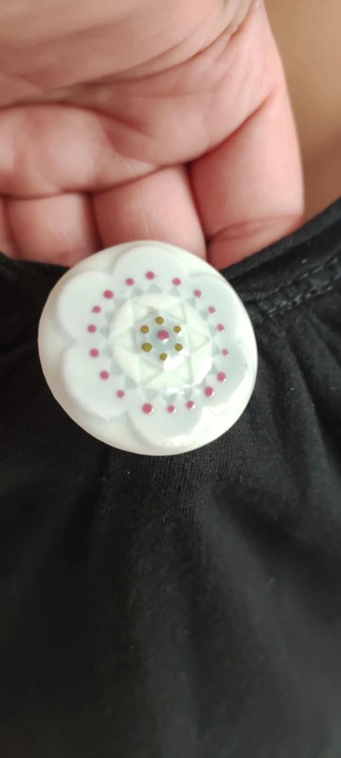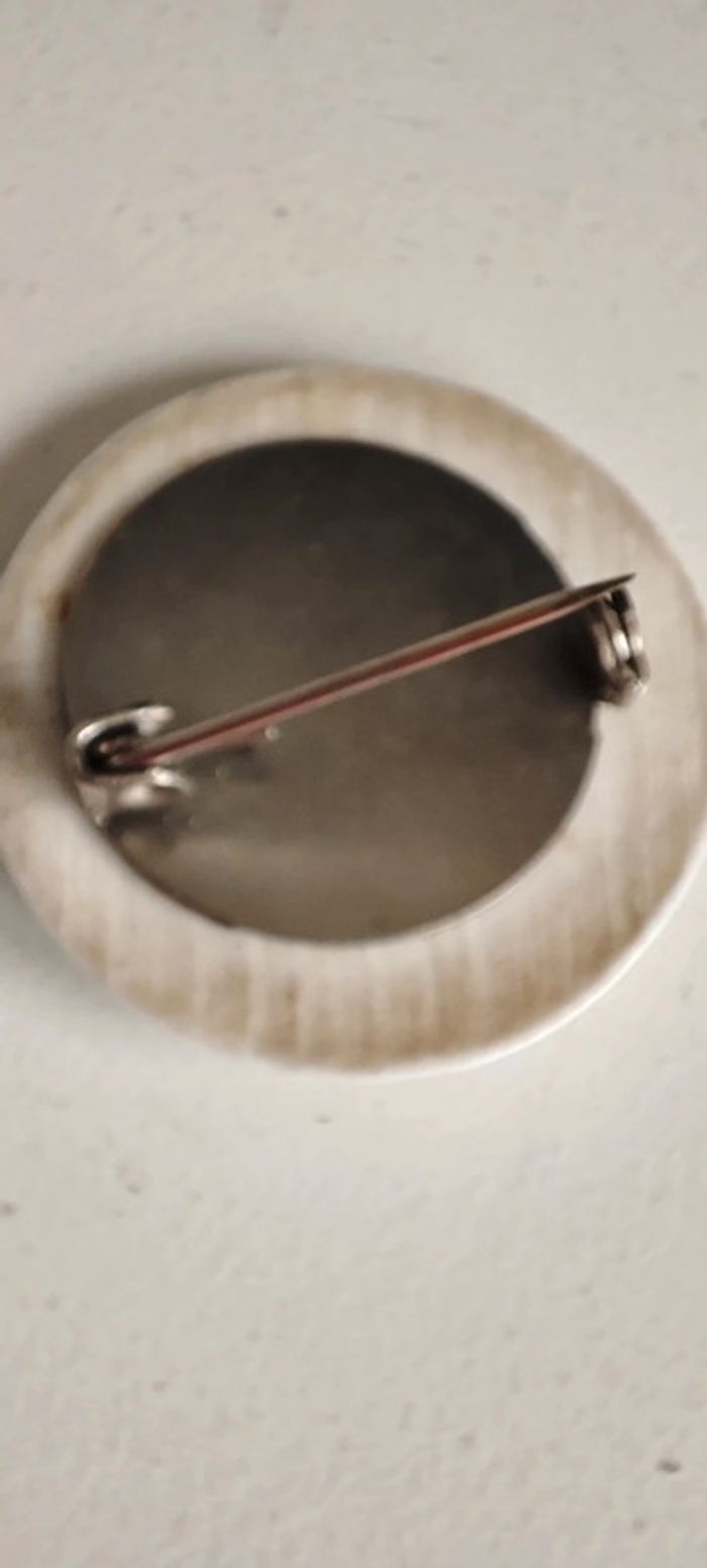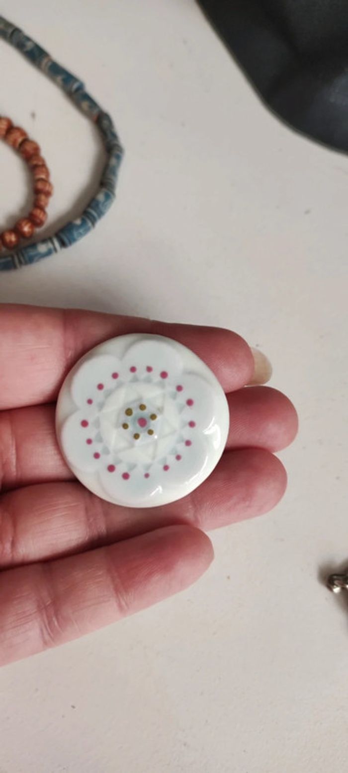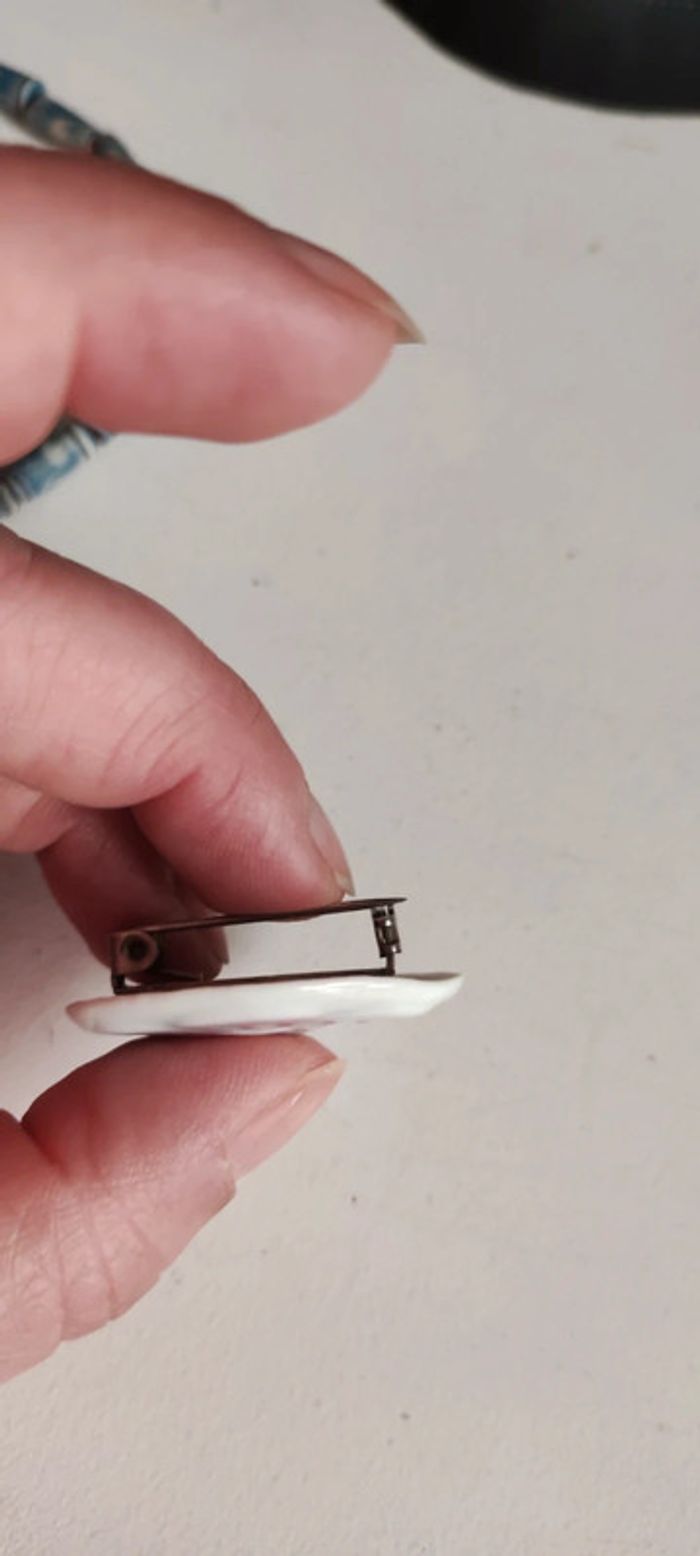 Très bon état pour cette broche en céramique ou porcelaine diamètre 3,4 cm Lot possible sur demande #baronnebroche