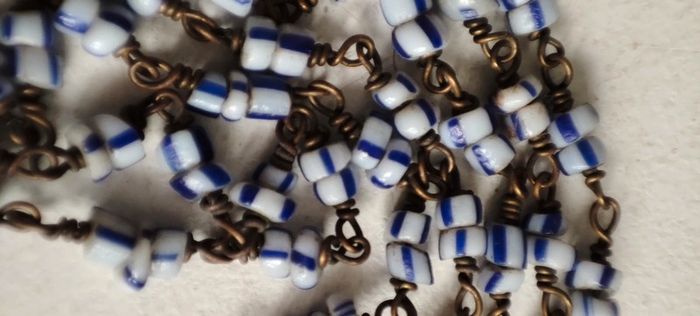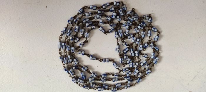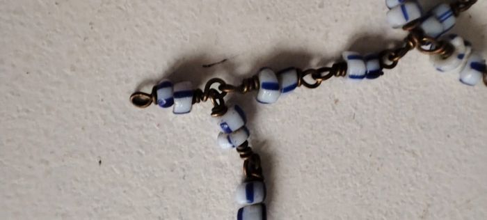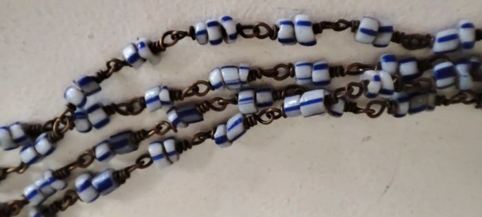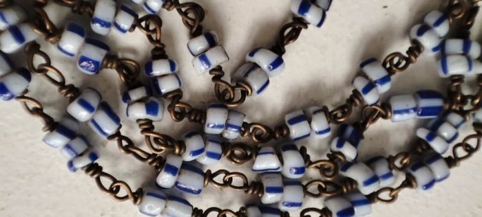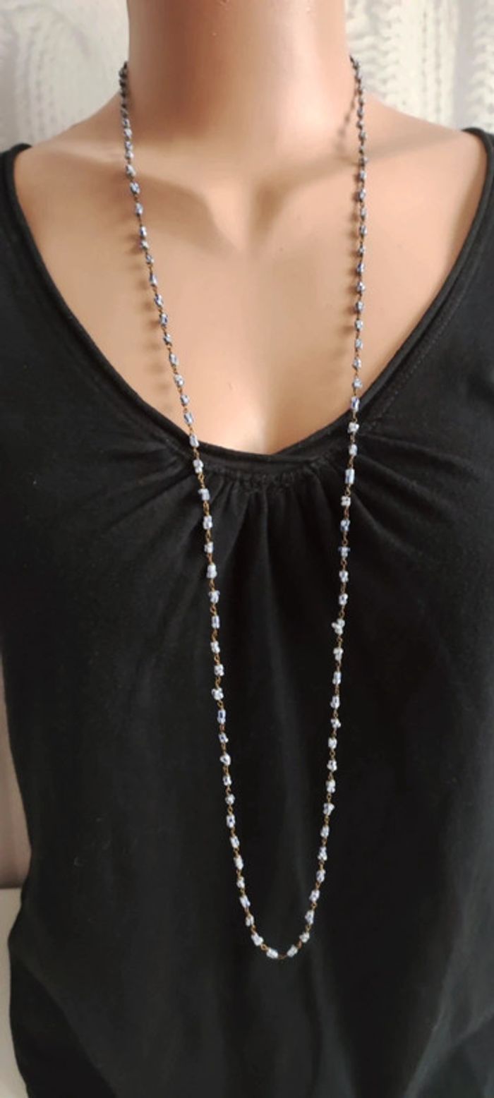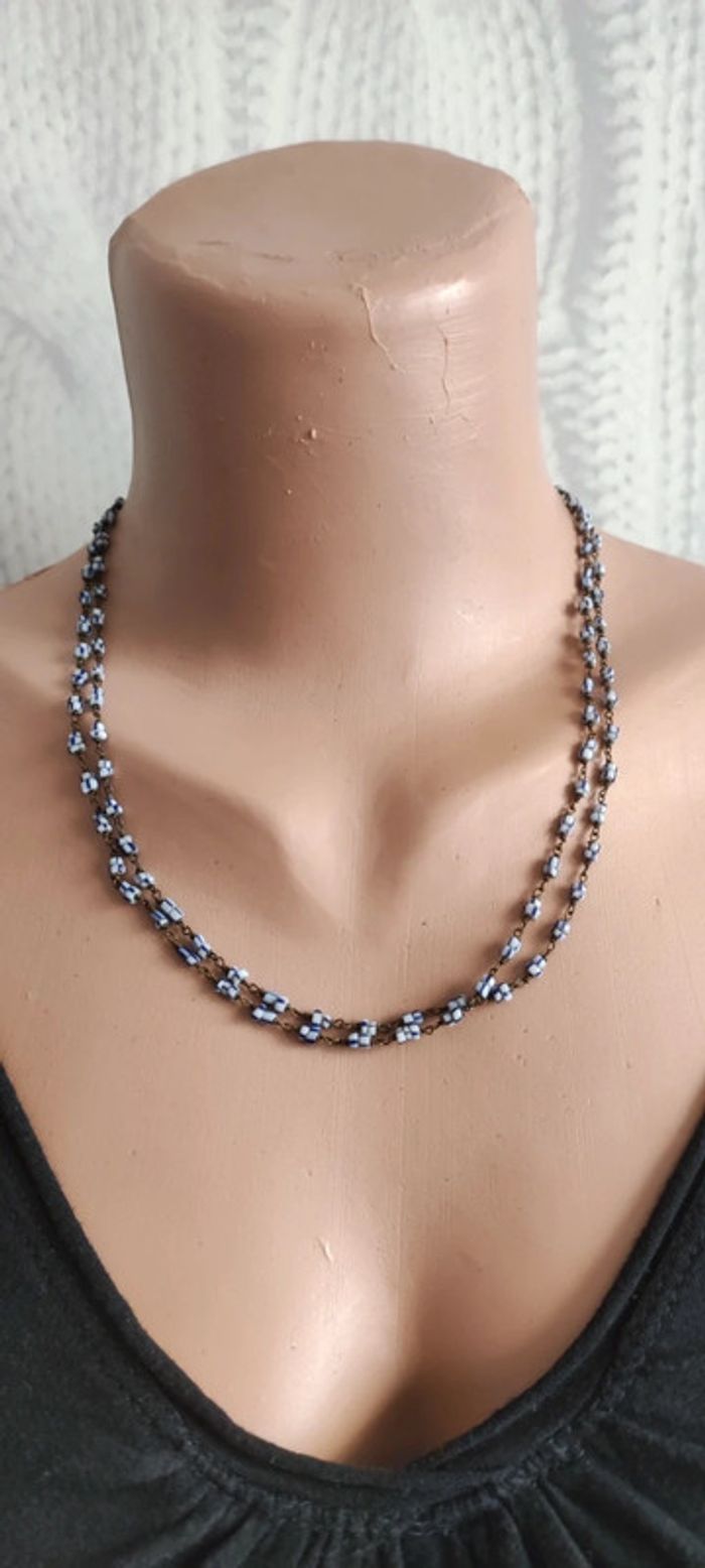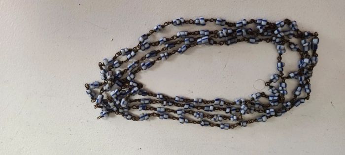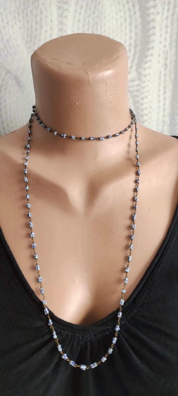 Collier très fin perles bleues et blanches métal vintage #baronnesautoir