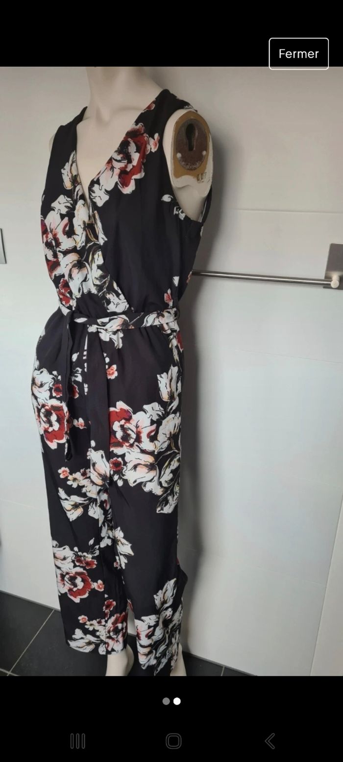 Splendide combinaison à fleurs assez légère avec élastique à la taille et ceinture à nouer. Très bon état, taille 36-38
