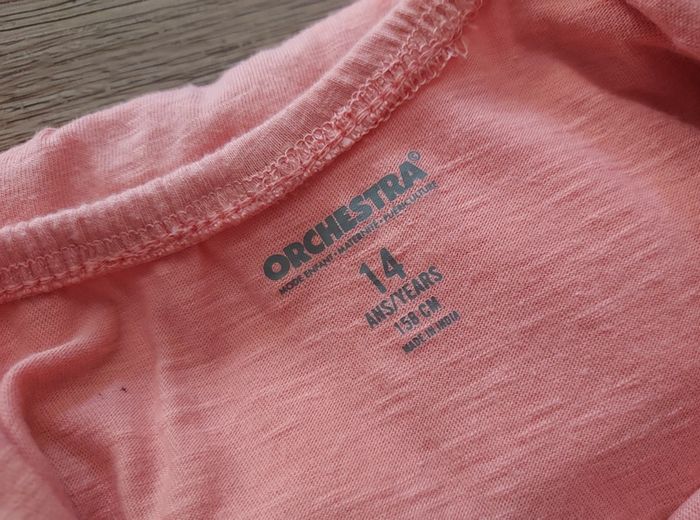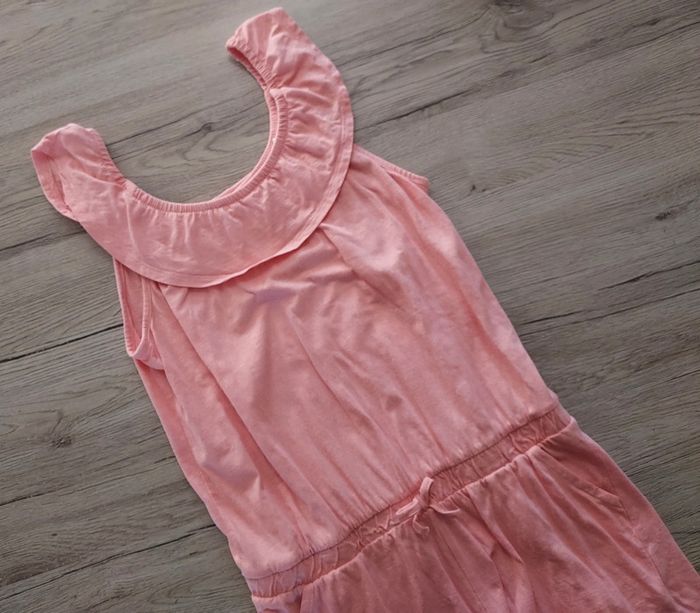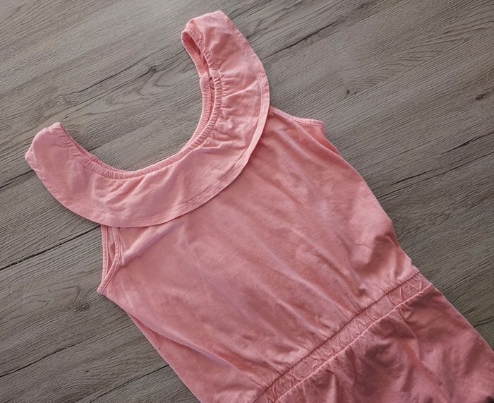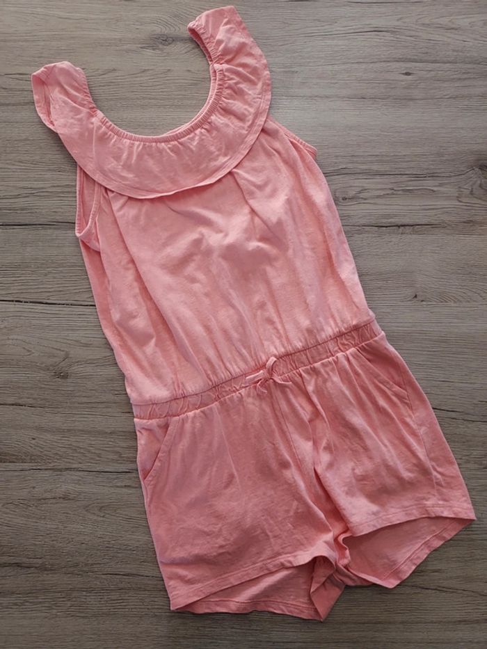 Combishort en coton Coloris : Corail Taille élastiquée Bretelles volantes Taille : 14 ans Taille petit plutôt 12 ans (échancré devant et longueur trop juste bretelles/entrejambe) Peu porté
